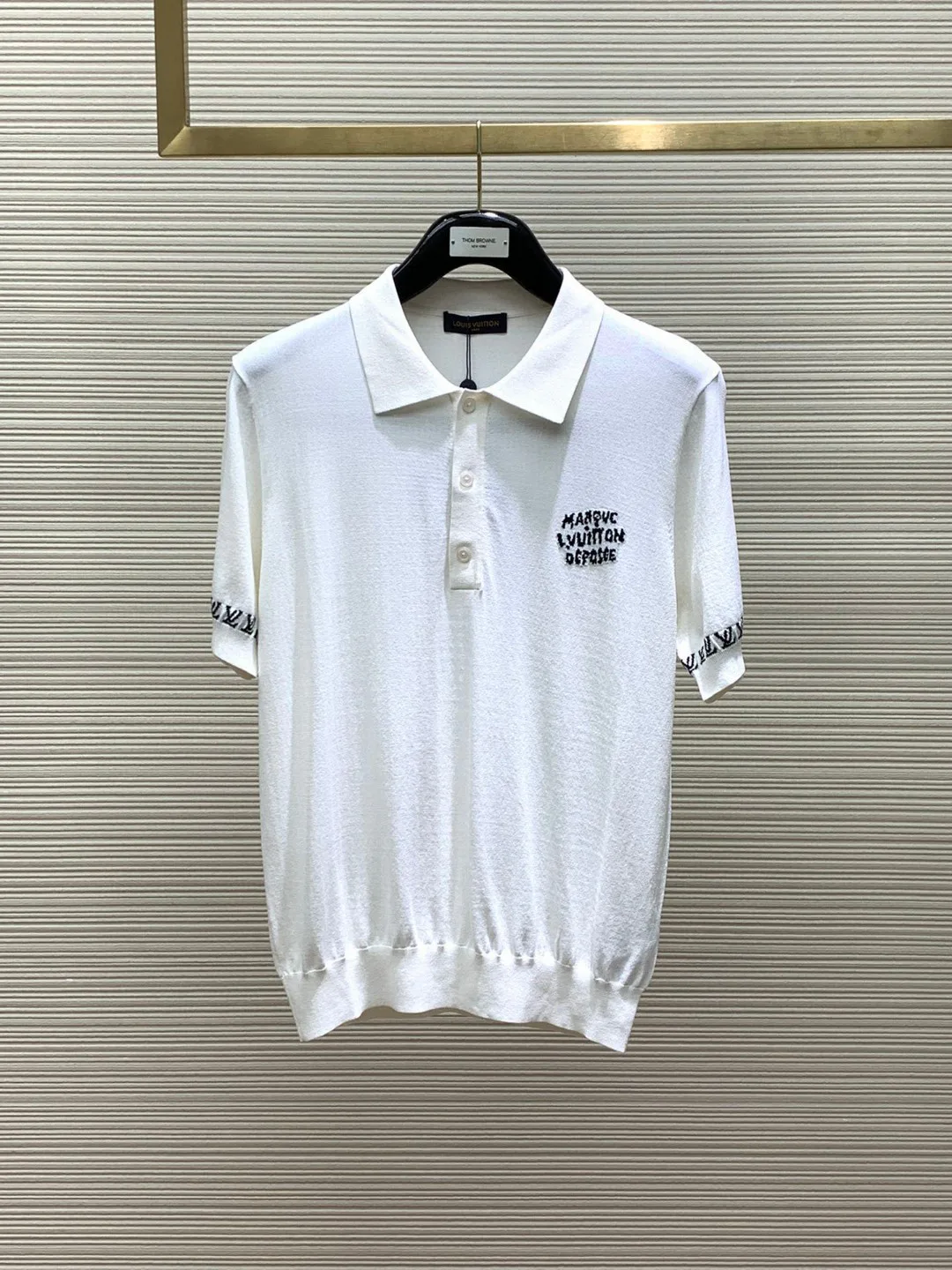 Представляем вам новый стильный вязаный пуловер от бренда LOUIS VUITTON. Это свежая модель для лета 2025 года, сочетающая модный и повседневный дизайн. Пуловер с отложным воротником и короткими рукавами привлекает внимание своей оригинальностью.