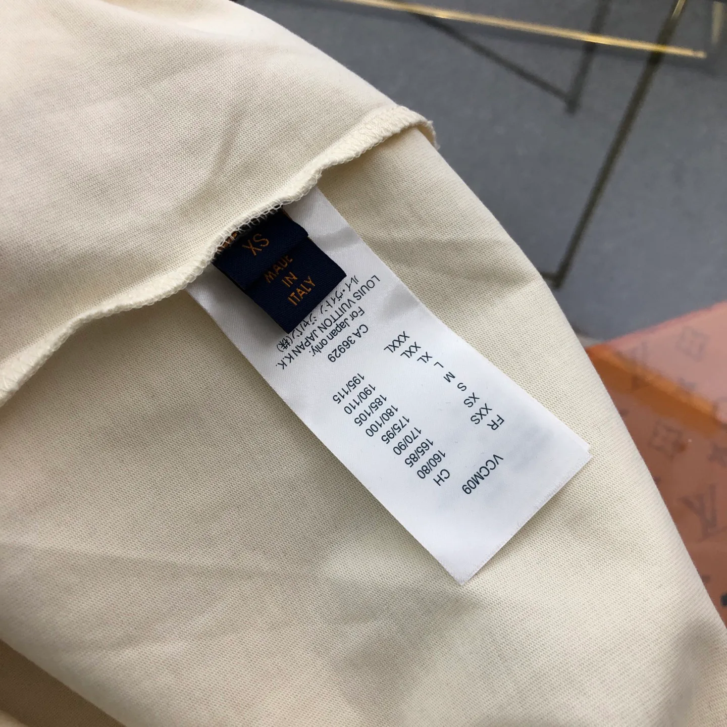 Футболка доступна в классическом черном и нежном бежевом цветах. Размерный диапазон от XS до L обеспечивает идеальную посадку. Каждая модель подтверждена этикетками, подтверждающими оригинальность и высокое качество.