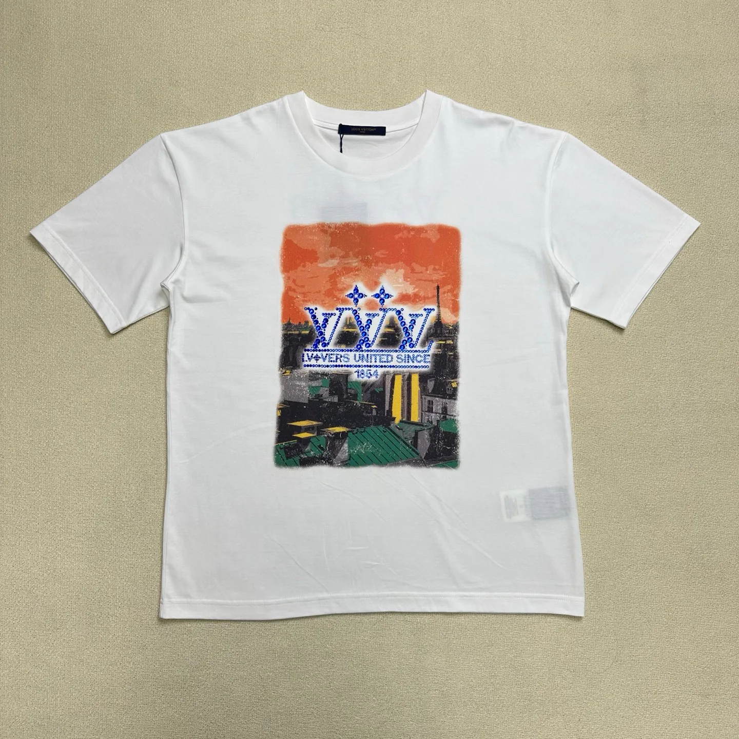 Передняя часть футболки оформлена цифровой печатью, а затем декорирована шестью различными по размеру импортными стразами с эффектом радужного перелива. Задняя сторона украшена импортной красящей пастой, что дополнительно подчеркивает качество изделия. Все швы выполнены аккуратно и ровно, что подтверждает высокие стандарты качества.