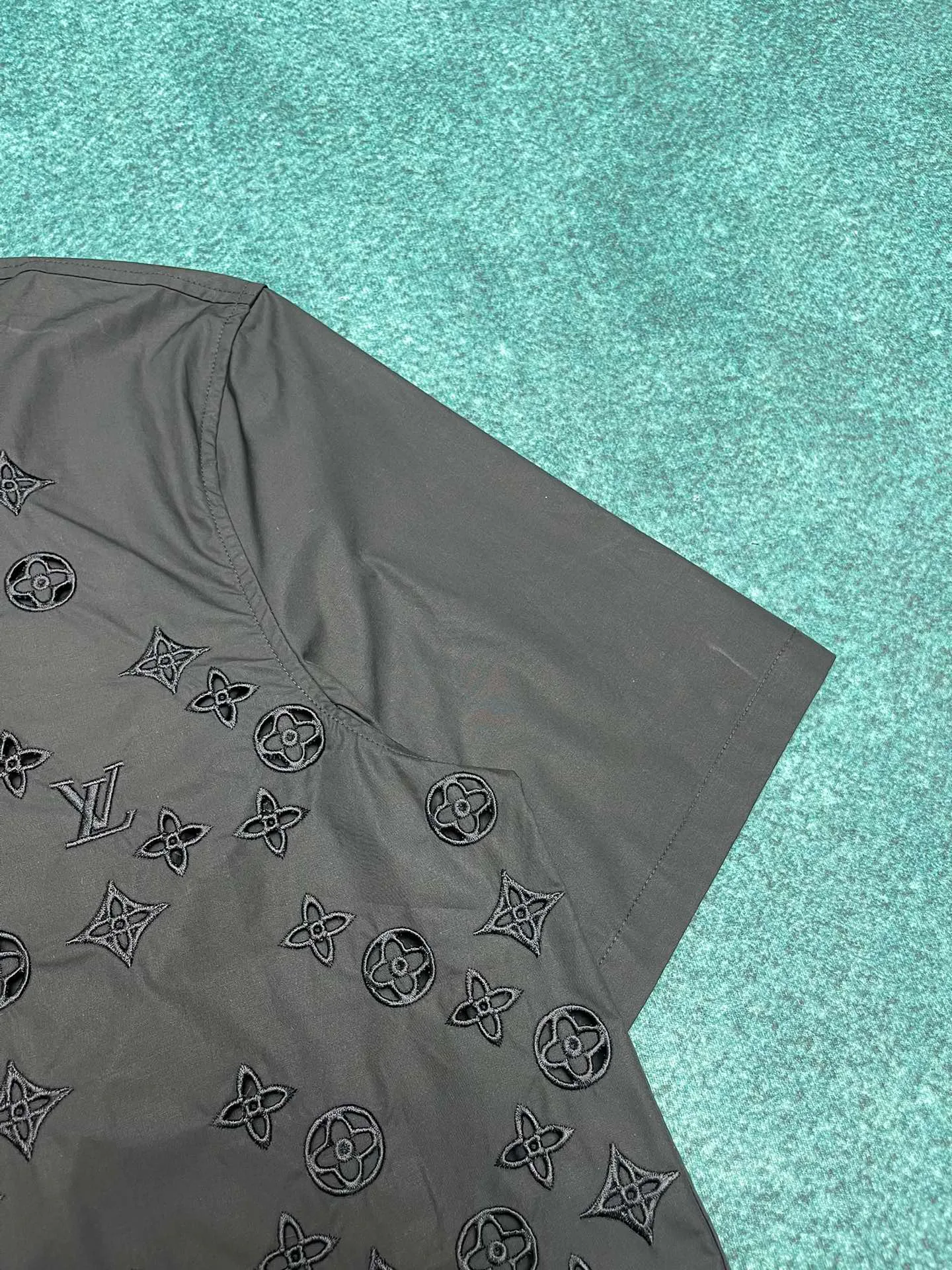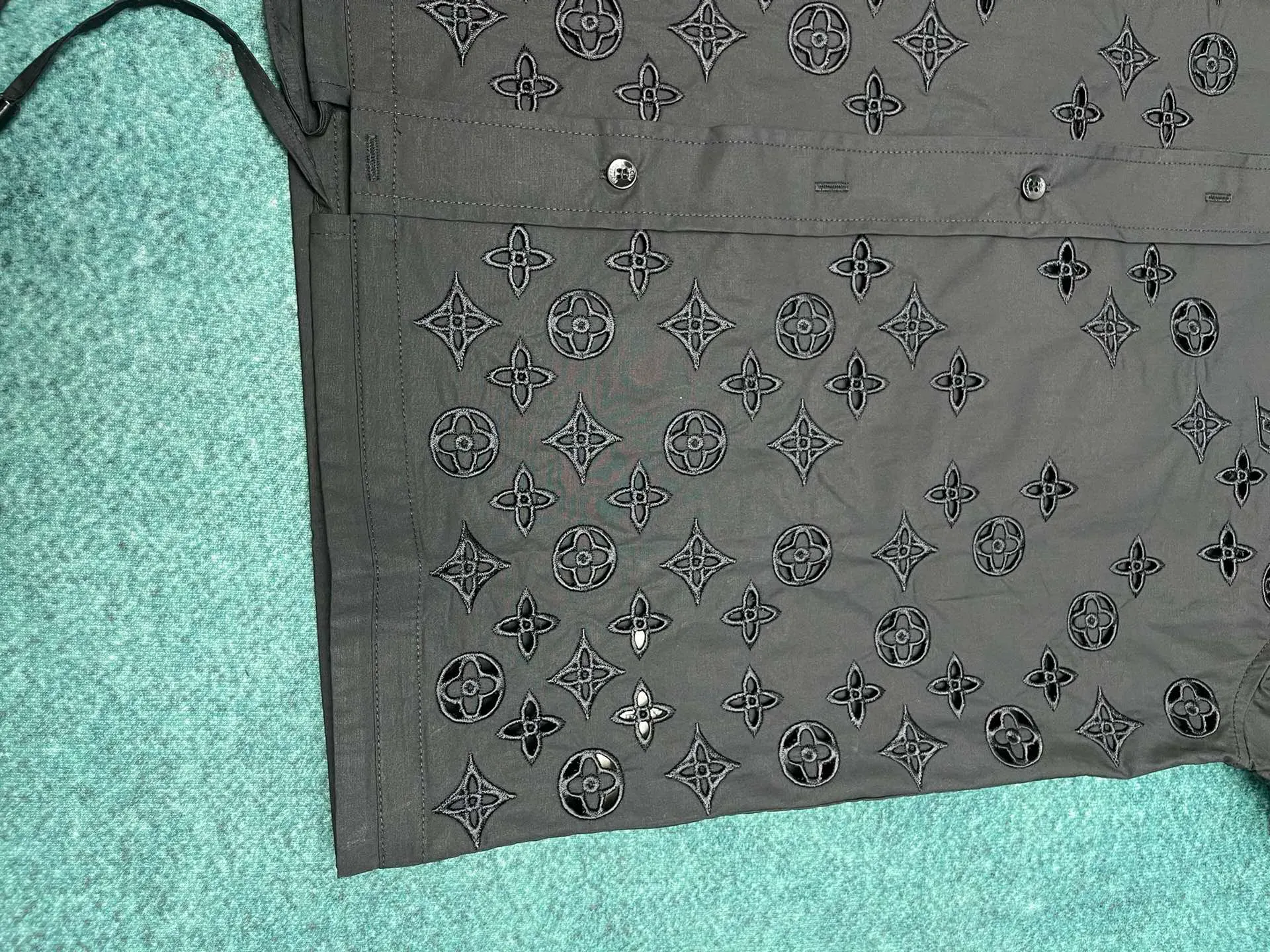 На задней части рубашки расположена эмблема Marque L.Vuitton Déposée. Рубашка доступна в размерах S, M, L, XL, что позволяет выбрать подходящий вариант для любой фигуры. Комфорт и стиль делают ее отличным выбором для весеннего гардероба.