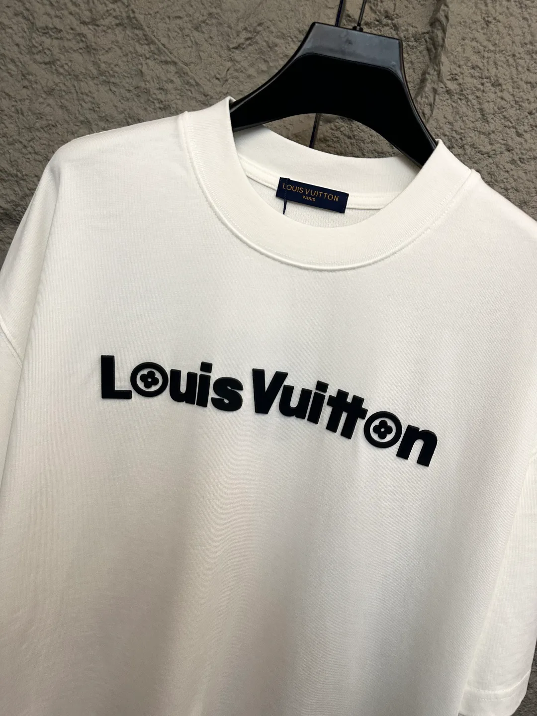 Логотип LV на передней и задней части выполнен в 3D-объёмном стиле, создавая выразительный декоративный эффект. На спине размещена классическая нашивка, подчеркивающая дизайн модели. Кастомная фурнитура и элементы точно подогнаны, соблюдена высокая точность соответствия по лекалам.