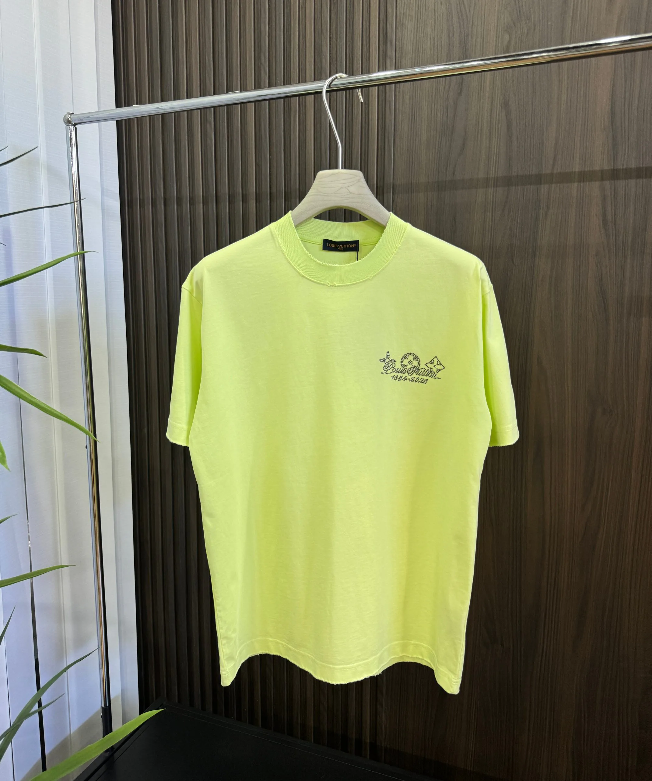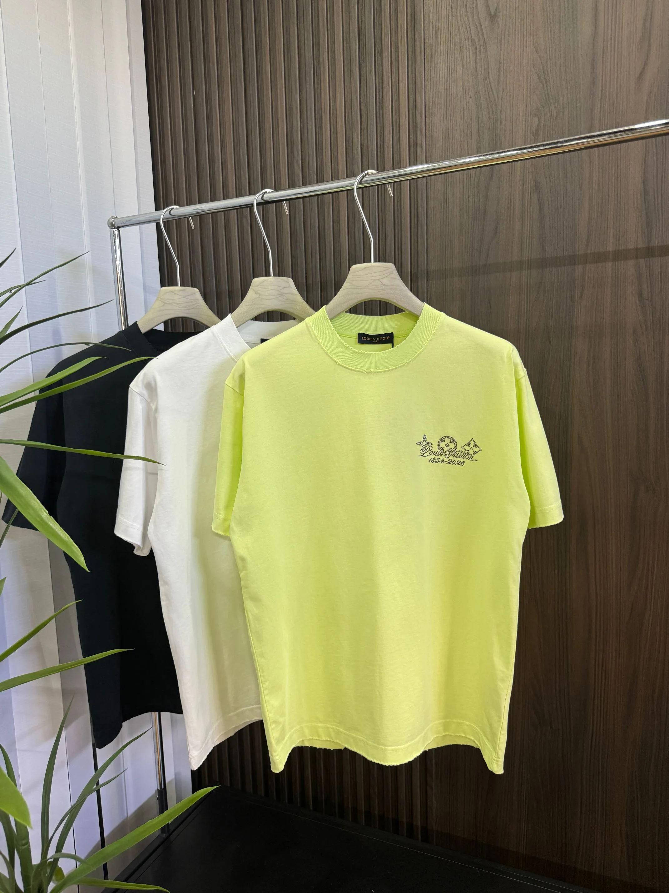 На передней части расположена логотипная отделка, подчеркивающая стиль бренда. Технология потертостей придает изделию легкий эффект изнашивания, ненагружая дизайн. Футболка представлена в черном, белом и неоново-зеленом颜色. Доступны размеры S, M, L, XL и XXL.