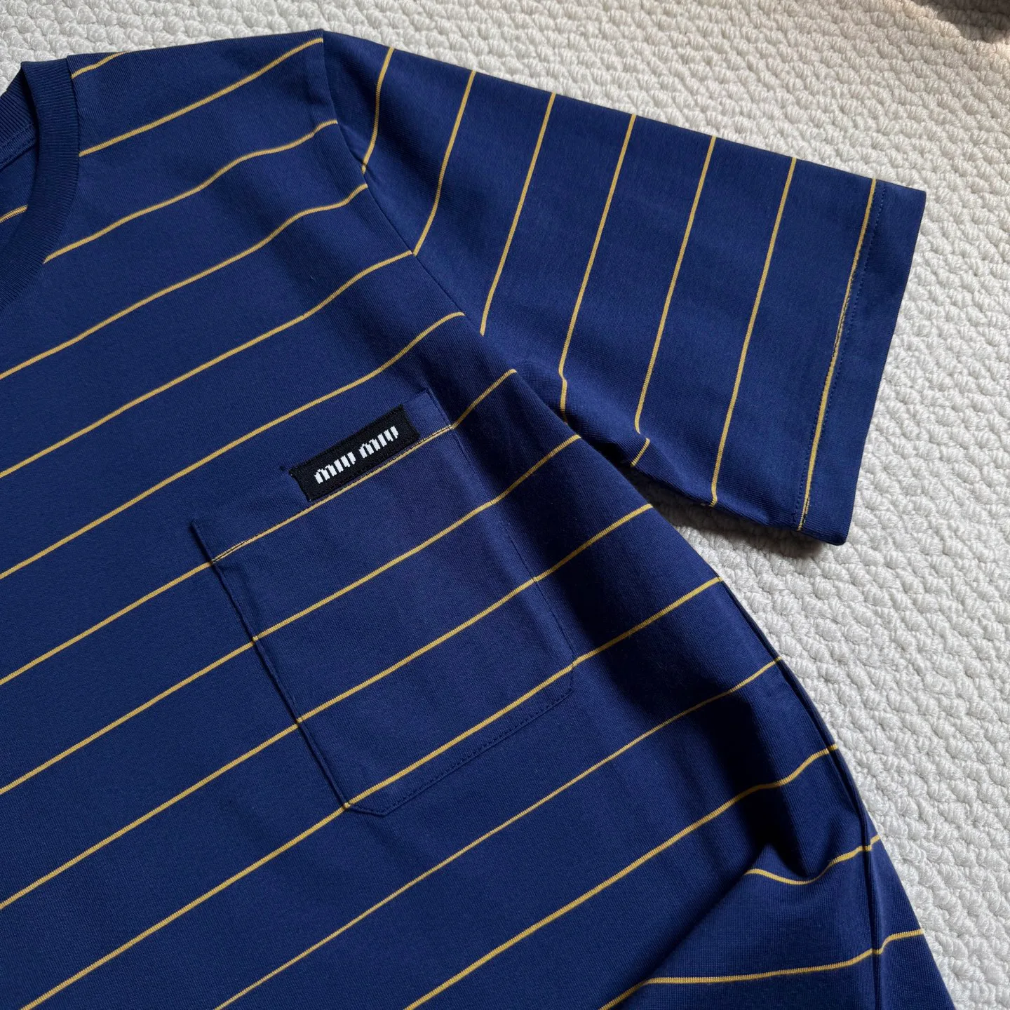 Два цвета аккуратно сшиты вместе; стыковки образуют симметрию и подчеркивают качество исполнения.