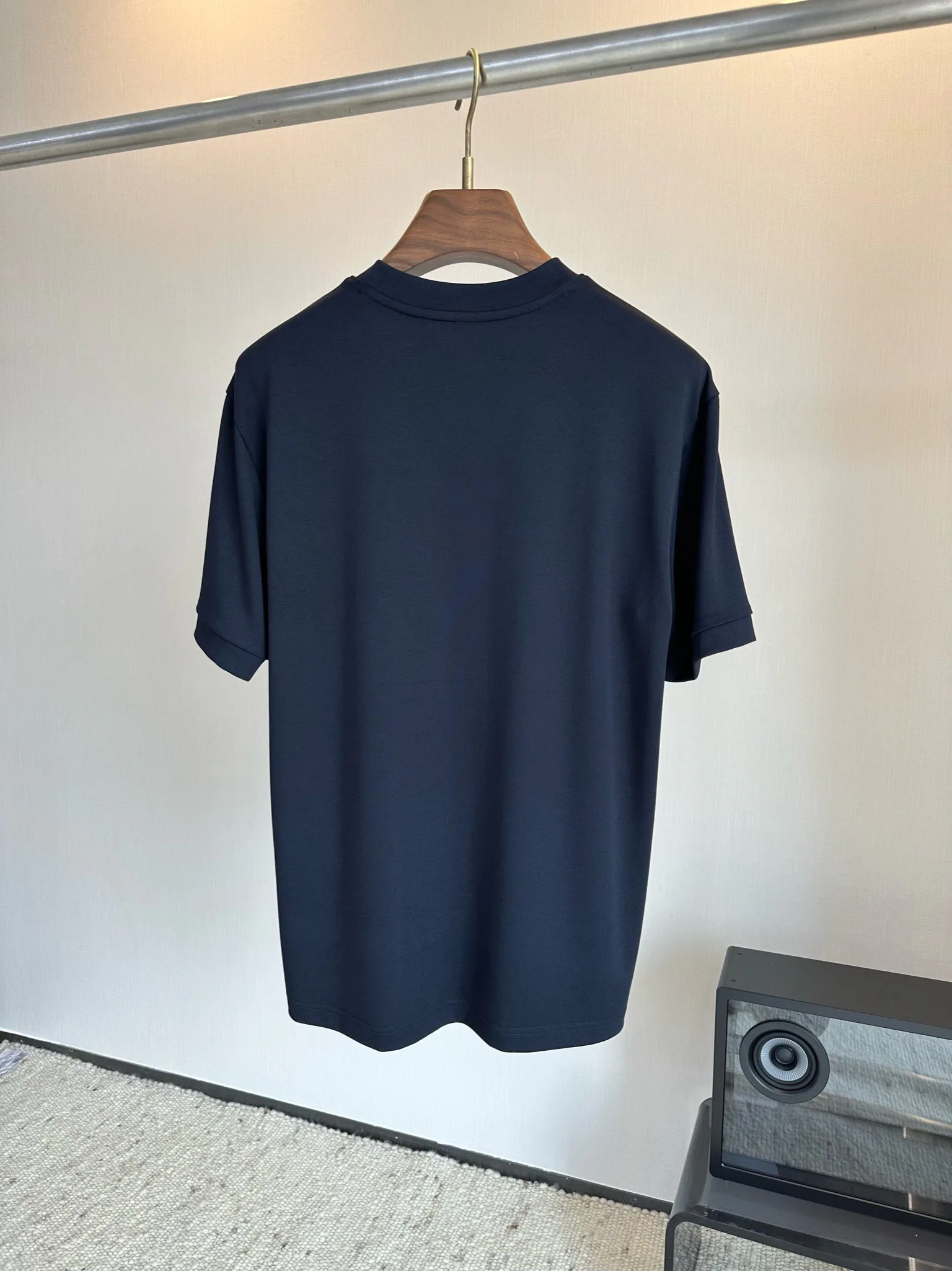 Круглый воротник придает футболке строгий и лаконичный вид. Передняя часть украшена фирменным элементом дизайна, а рукава оформлены логотипом MONCLER, что подчеркивает статус изделия. В производстве используется 3D крой, обеспечивающий точную посадку. Футболка сохраняет форму и внешний вид после стирок, подходит в качестве базового элемента гардероба.