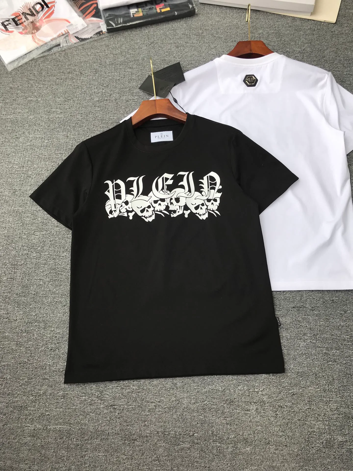 Футболка украшена эффектным принтом на груди, где изображены буквы "PLELN" и стильный символ черепа. Такой дизайн подчеркивает индивидуальность и привлекает внимание, делая изделие идеальным выбором как для повседневной носки, так и для создания стильных образов.