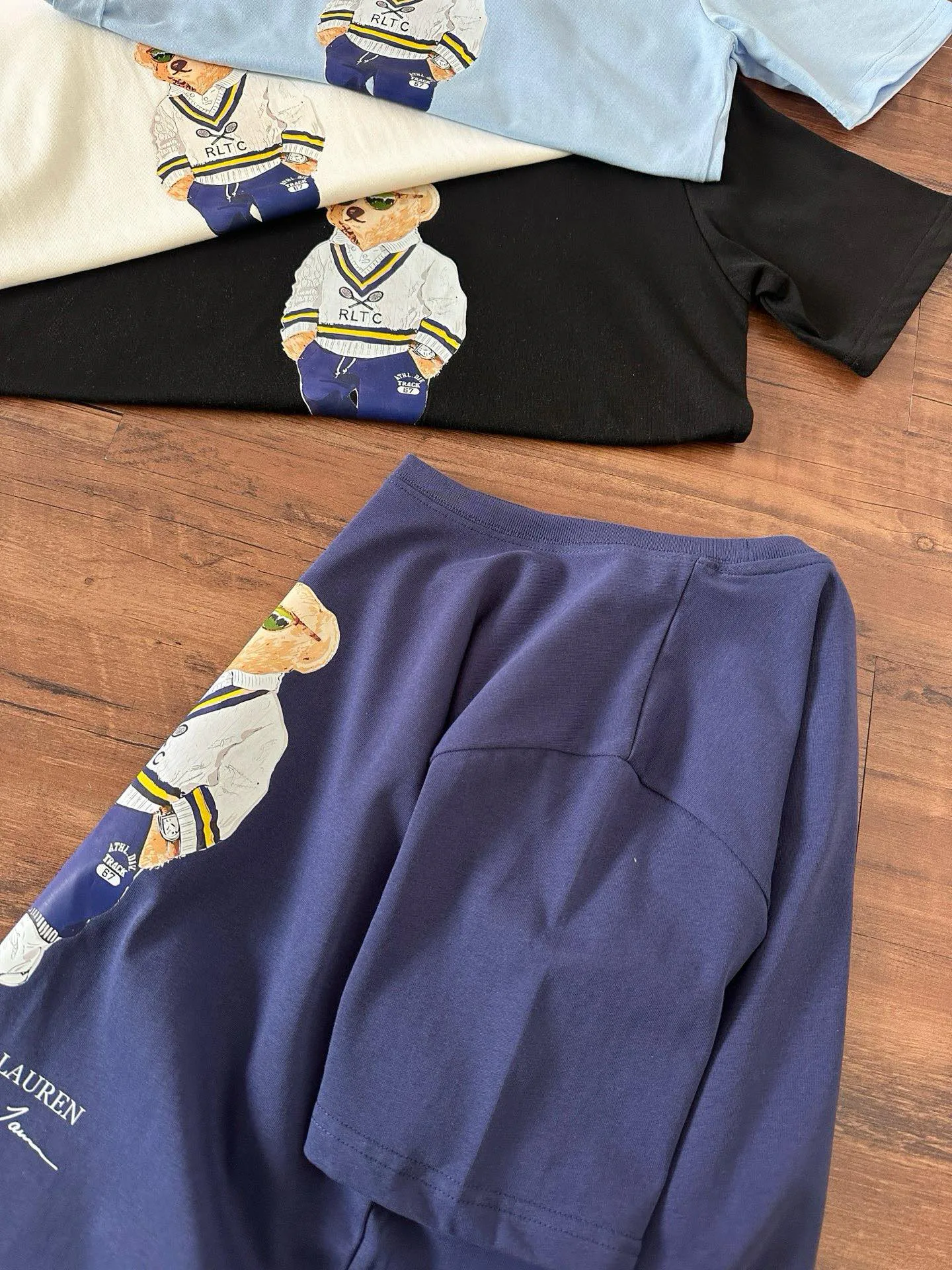 Эта модель доступна в нескольких цветах: белом, чёрном, синем и голубом, что позволяет выбрать вариант, который наилучшим образом соответствует вашему стилю. На каждой футболке присутствует логотип и стилизованная подпись знаменитого дизайнера марки RALPH LAUREN, что подчеркивает высокое качество изделия и его принадлежность к известному бренду.