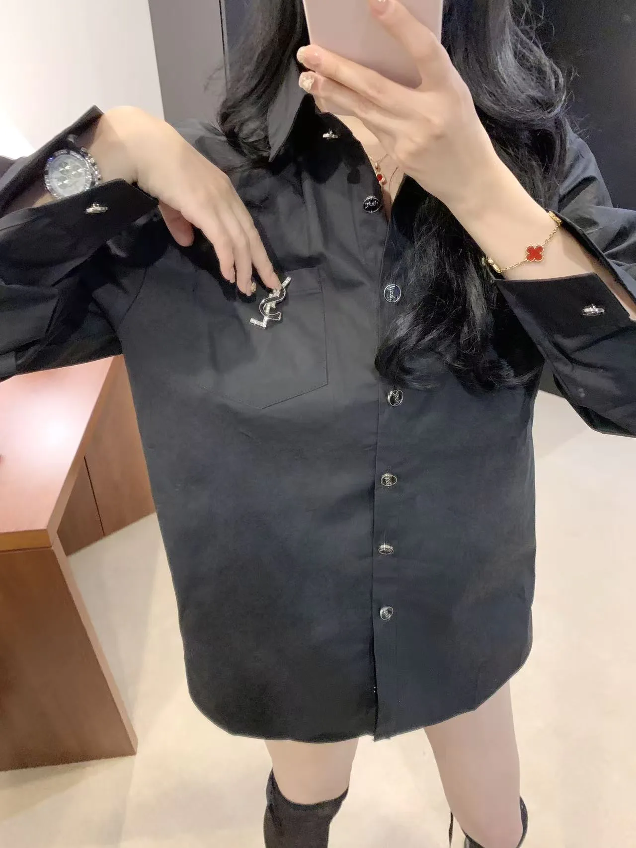 Обновите свой гардероб с этой модной рубашкой от SAINT LAURENT - элементом, который подчеркнёт вашу индивидуальность и чувство стиля.