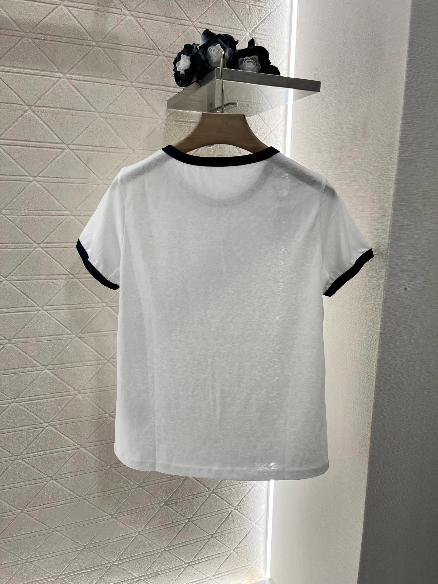 Стандартный крой подчеркивает брендовый стиль и оформлен контрастными обрезами на горловине и рукавах. Крупные стразы асимметрично размещены вдоль плеча и боковой части, а модный принт с логотипом придает изделию уличный вид. Футболка доступна в двух цветах и размерах S, M, L.