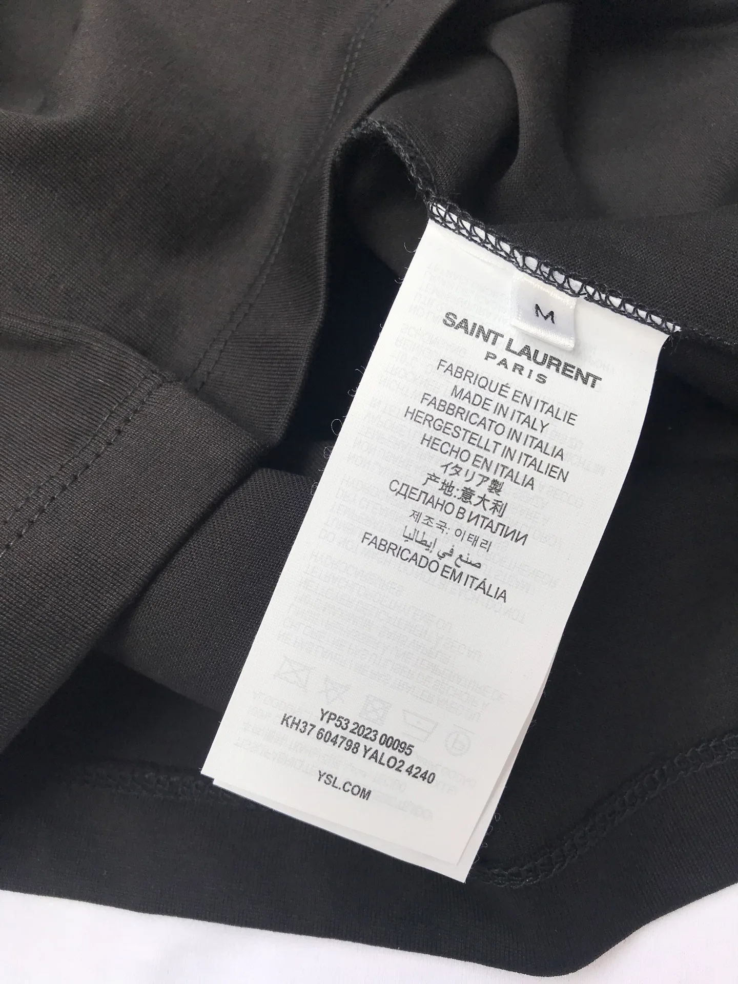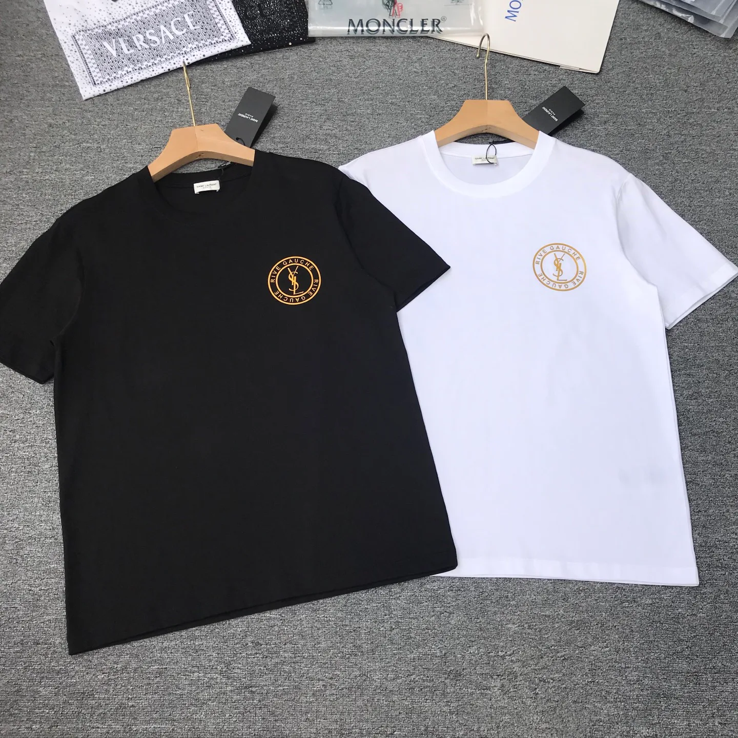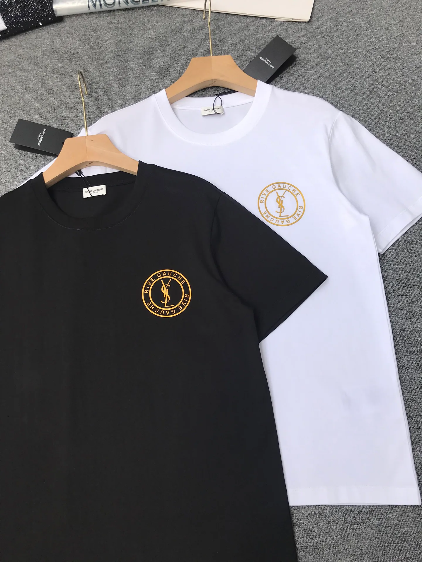 Футболка украшена элегантным золотым логотипом SAINT LAURENT, расположенным на груди, что придает ей утонченный и роскошный вид. Классические черный и белый цвета делают эту модель невероятно многофункциональной — её легко сочетать с любыми элементами одежды, от джинсов до юбок.