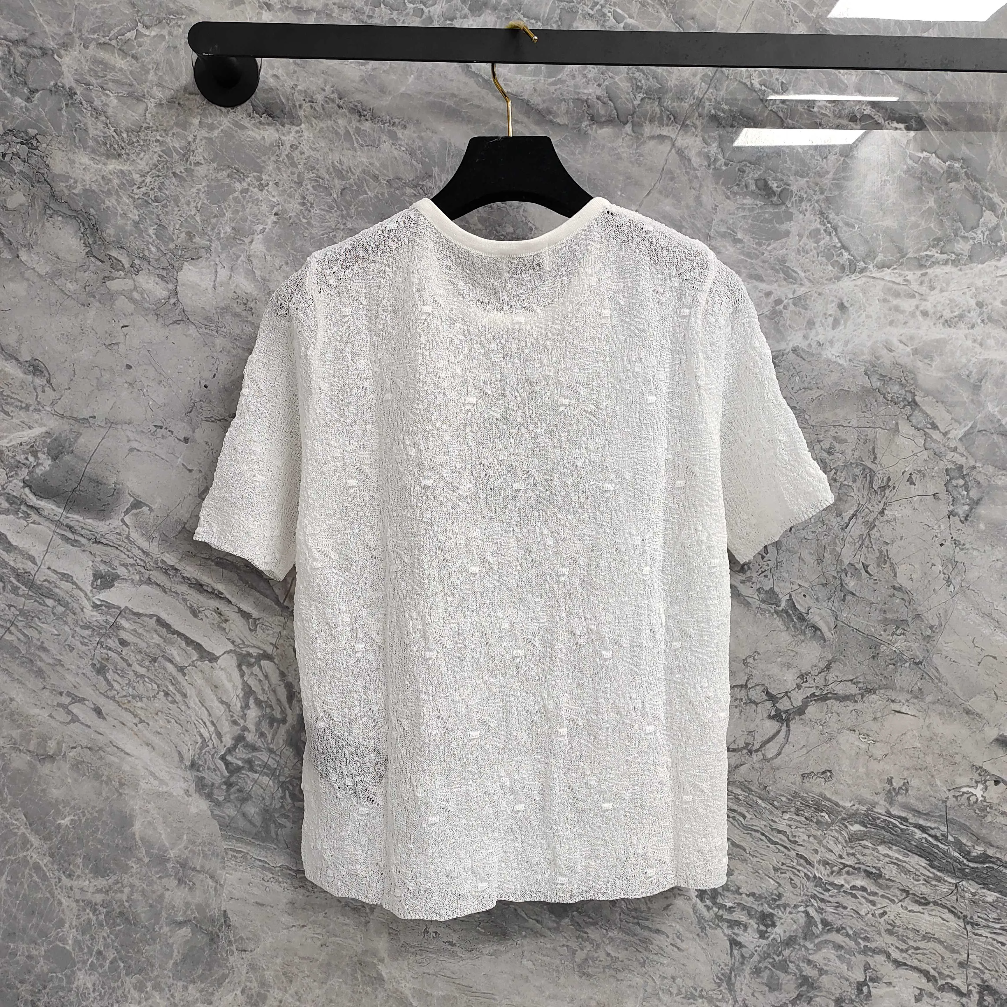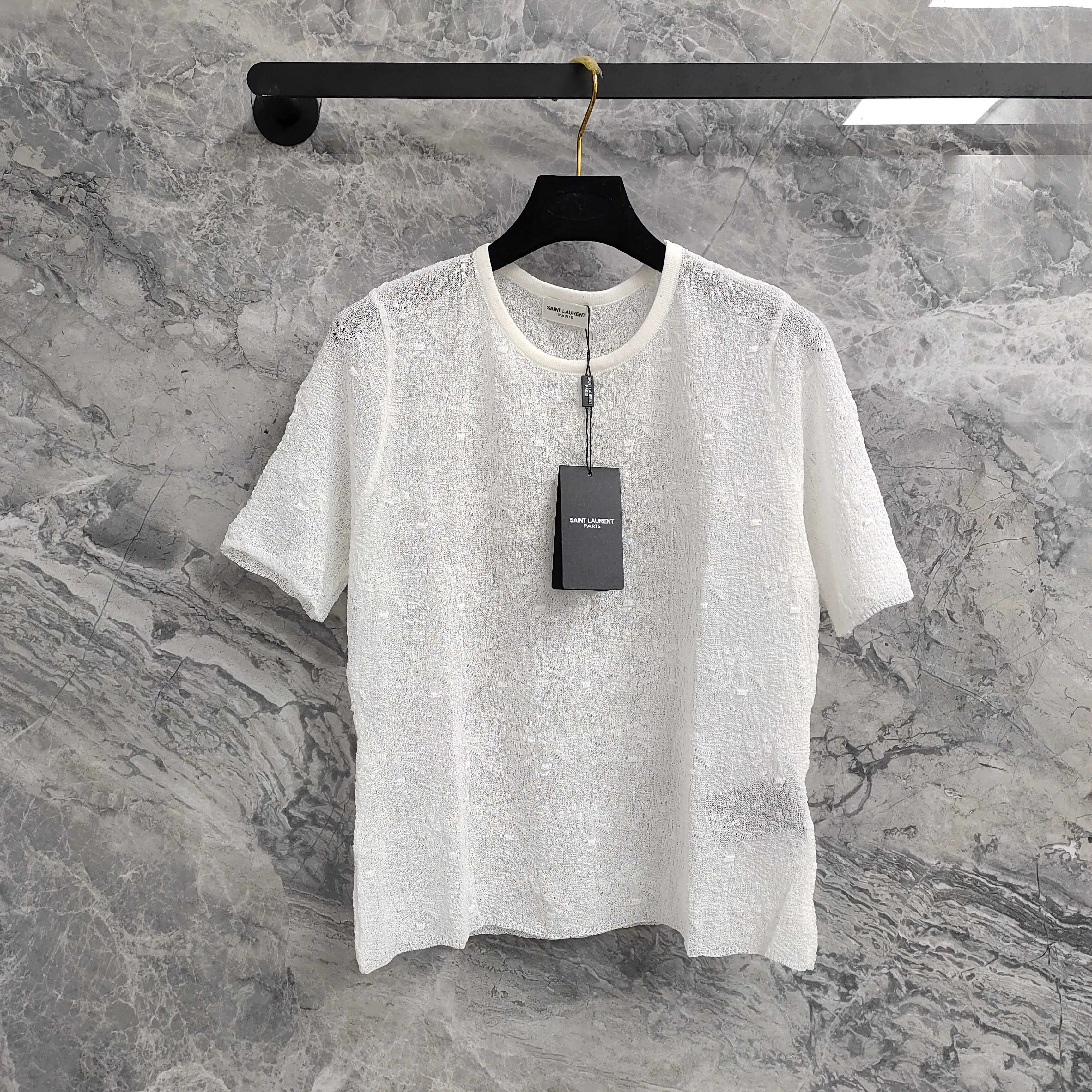 Особенность модели — изысканный нейлоновый текстиль, обеспечивающий комфорт и прохладу в теплую погоду. Дизайн украшен эксклюзивным принтом в виде фейерверка, аккуратно нанесенным с помощью специальной технологии на всю поверхность, придающим образу сексуальную и привлекательную атмосферу. Рукава и нижний край изделия дополнены изящными кружевами и ленточками, что придает блузке романтичный и элегантный вид.