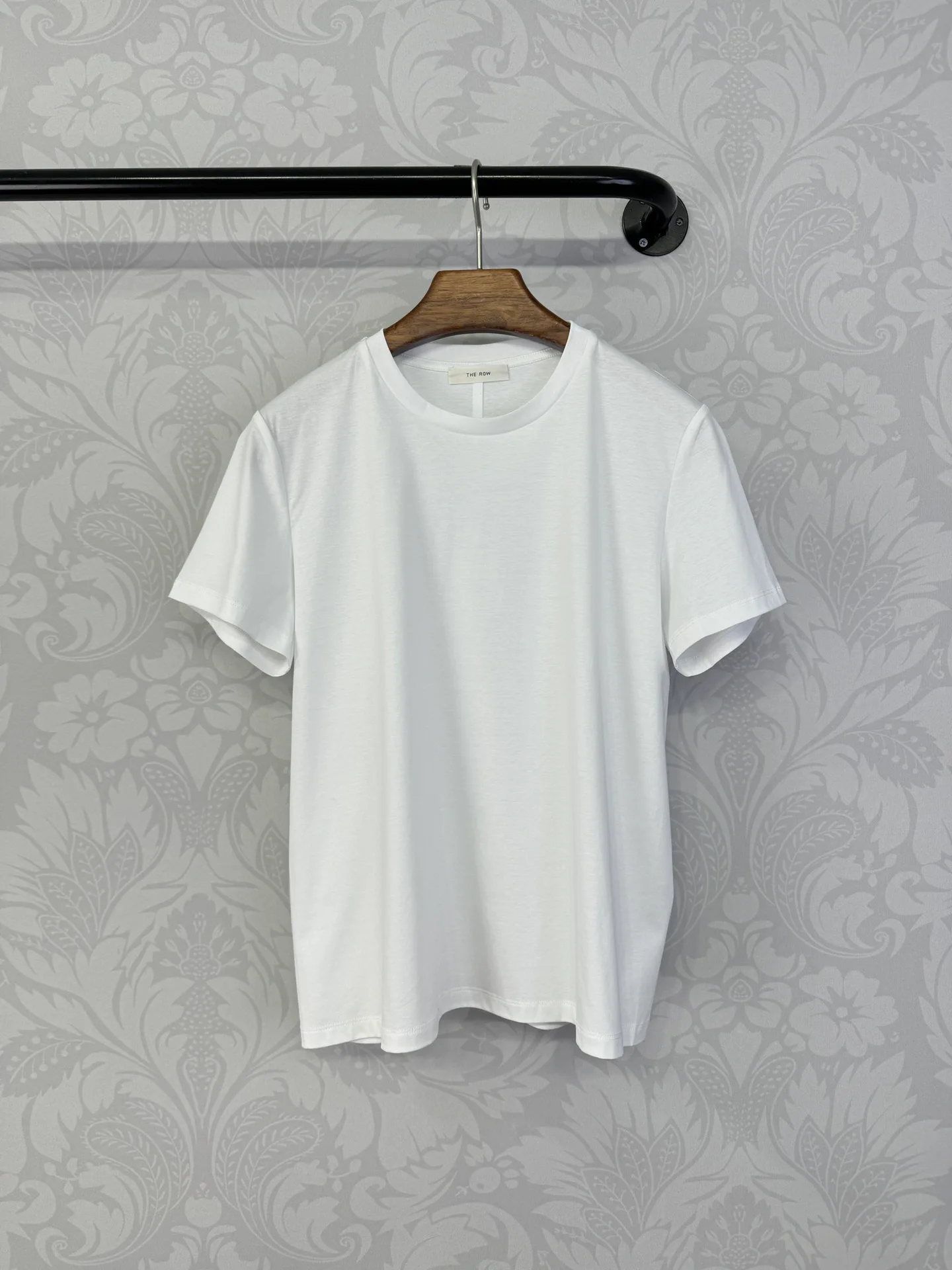 Футболка выполнена в классическом силуэте с идеальной длиной, которая подходит для любого типа фигуры, делает фигуру более стройной как спереди, так и сбоку, и может носиться как самостоятельно, так и в сочетании с другими элементами гардероба, демонстрируя безупречный вкус.