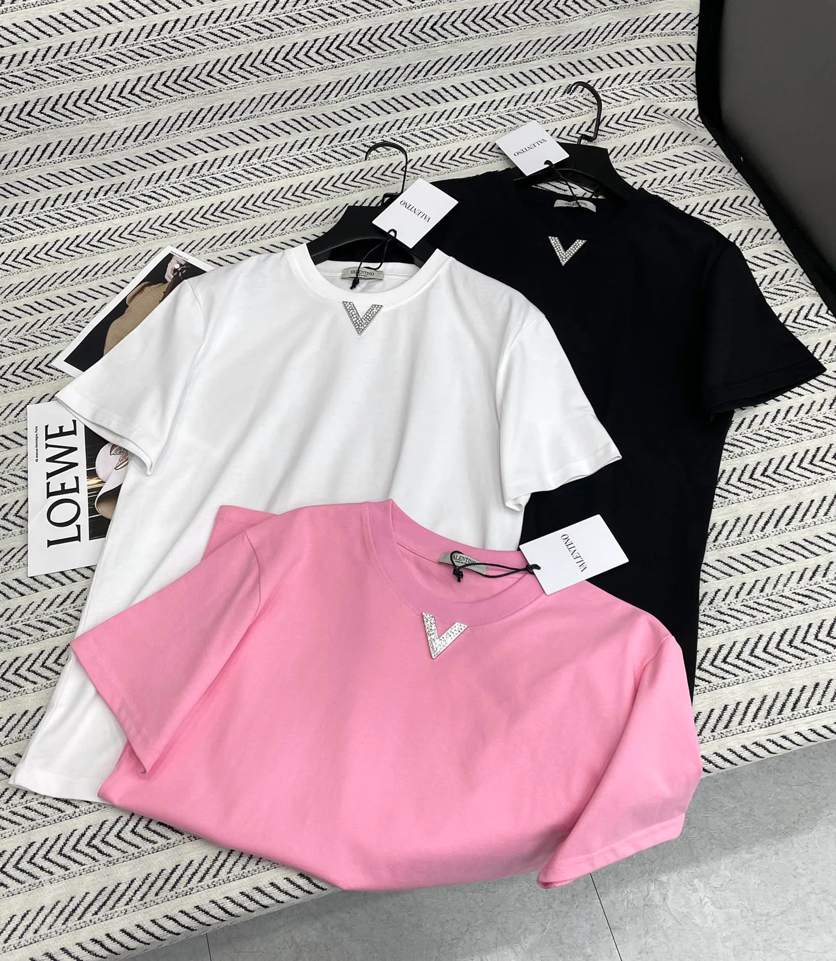 Футболка доступна в трех цветах: белом, черном и розовом. Размеры варьируются от S до L, что позволяет выбрать подходящий вариант для разных фигур. Не упустите возможность добавить эту модную и качественную вещь в свой ассортимент одежды!
