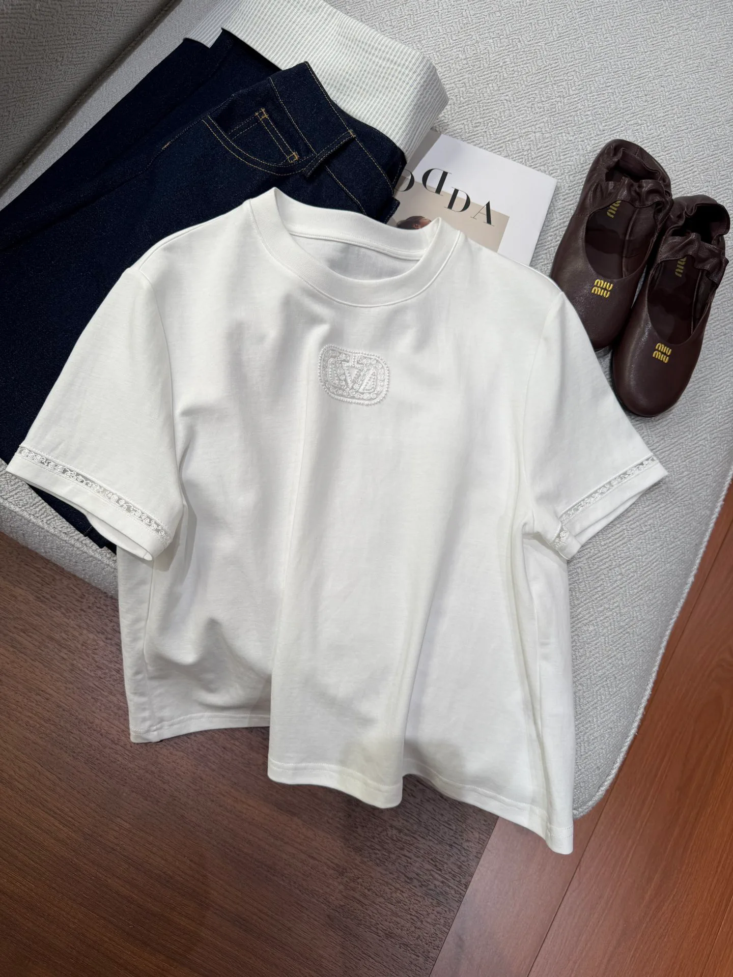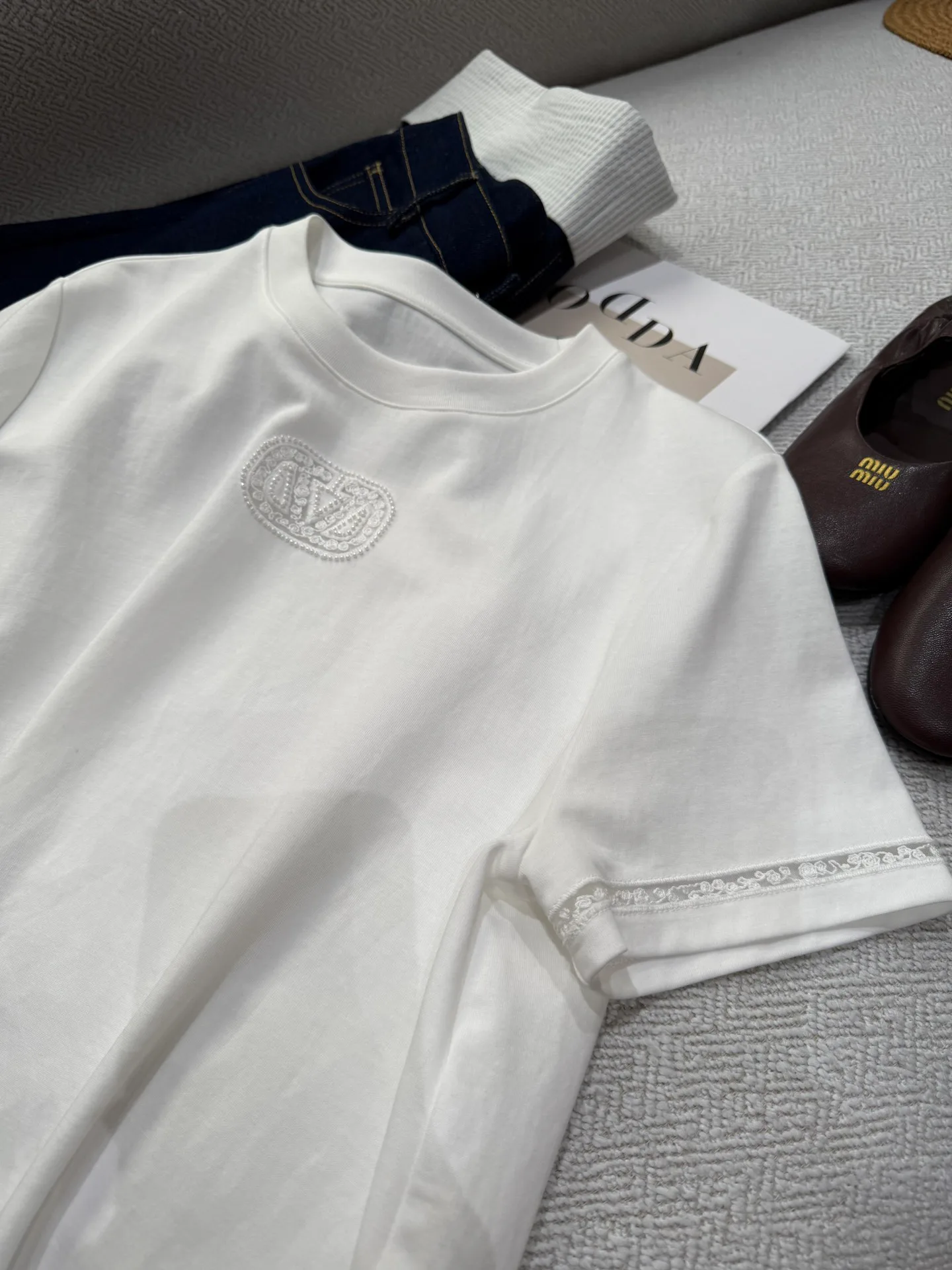 Дизайн футболки включает в себя оригинальное кружевное оформление, придающее наряду легкость и сексуальность. Каждое сечение ткани выполнено с высокой точностью, что отражает актуальные тренды моды и демонстрирует превосходное мастерство кроя.