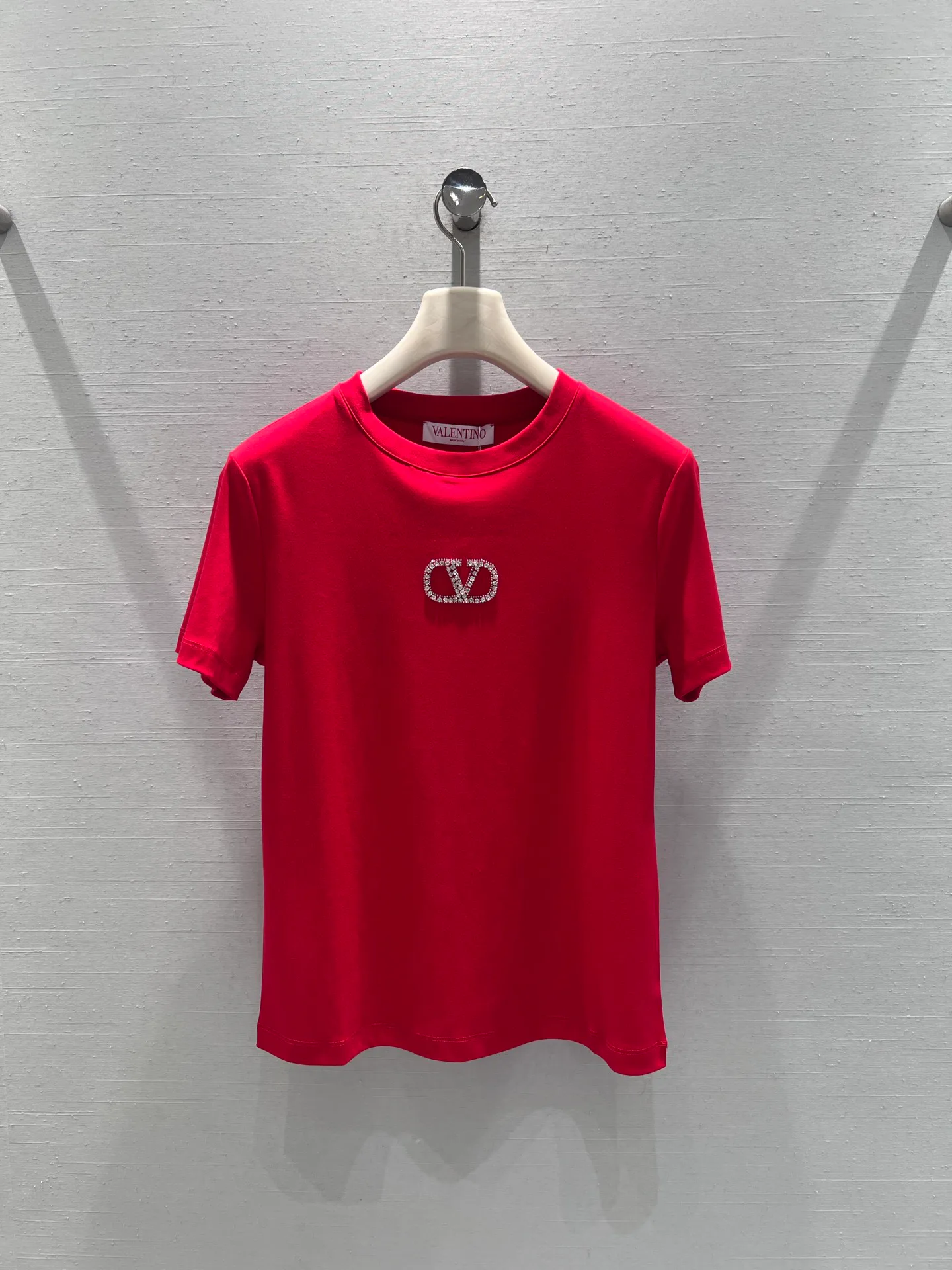 Футболки женские VALENTINO — на груди размещена фирменная эмблема двойной V из камней, выполненная с искусной инкрустацией и ярким блеском.