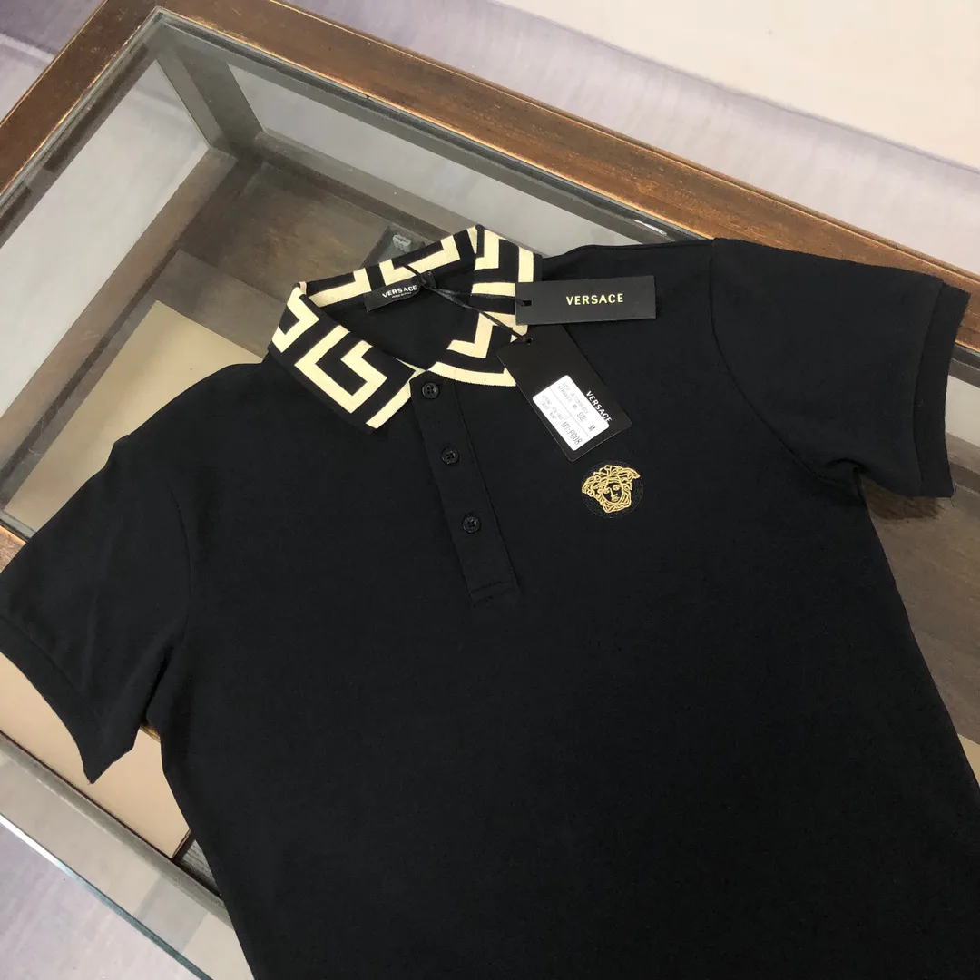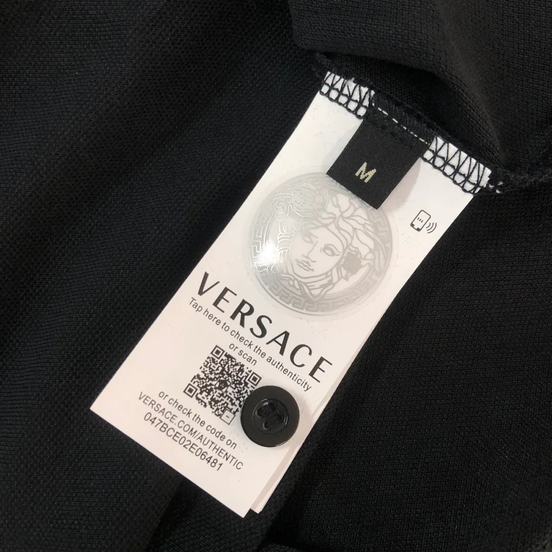 Поло отличается изысканным дизайном и хорошей посадкой за счет продуманного кроя, подчеркивающего минимализм и элегантность. Каждая деталь продумана, образ выглядит стильно в любой обстановке. Versace следует за качеством материалов, и эта модель не исключение. Материал — сатиновый хлопок, мягкий и гладкий на ощупь.