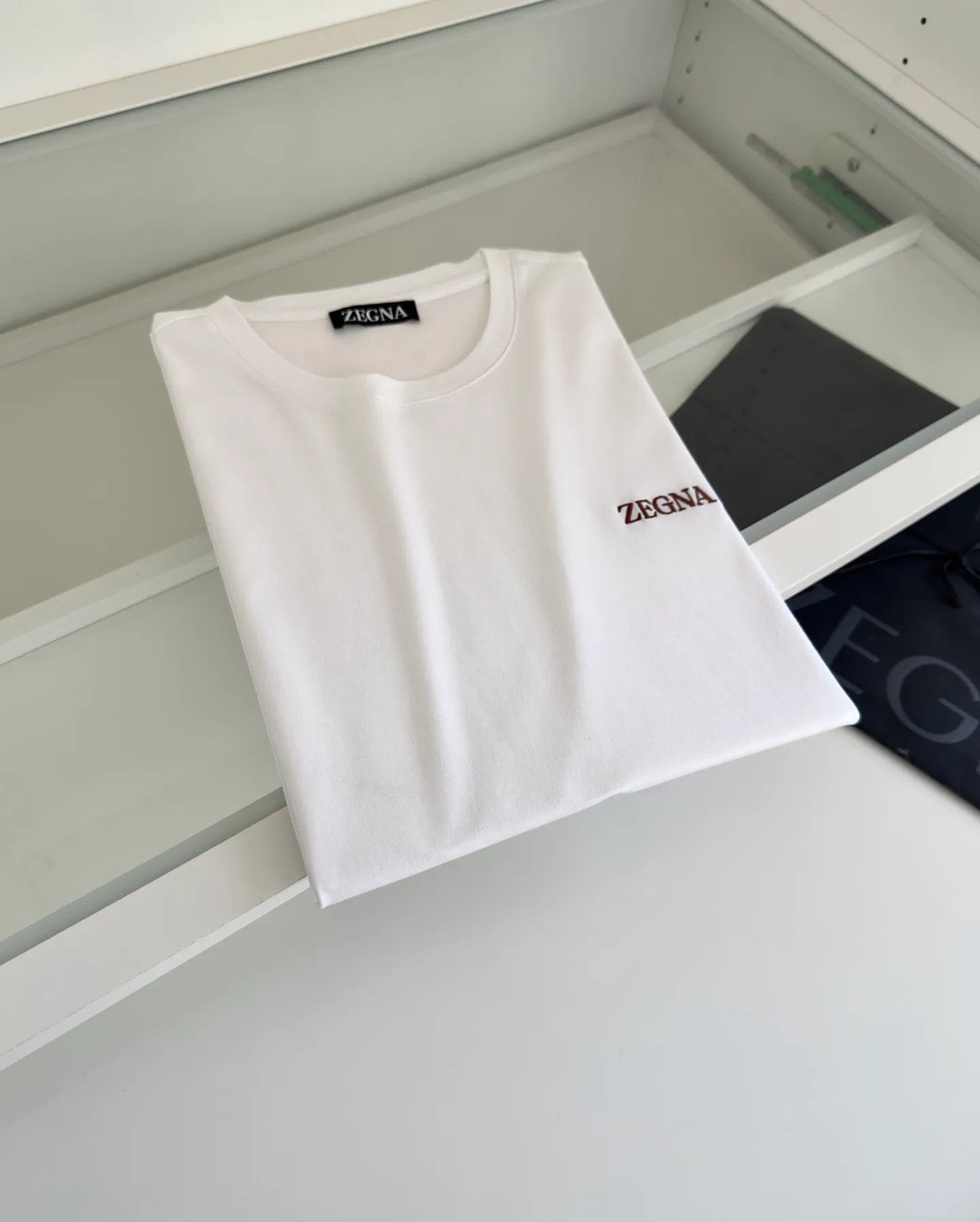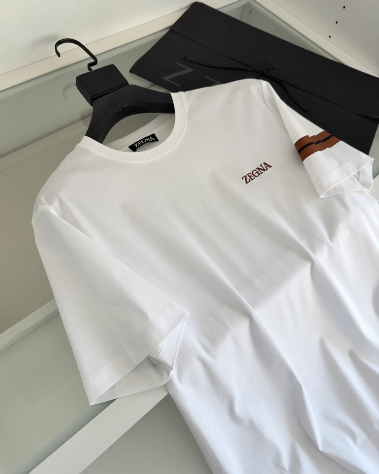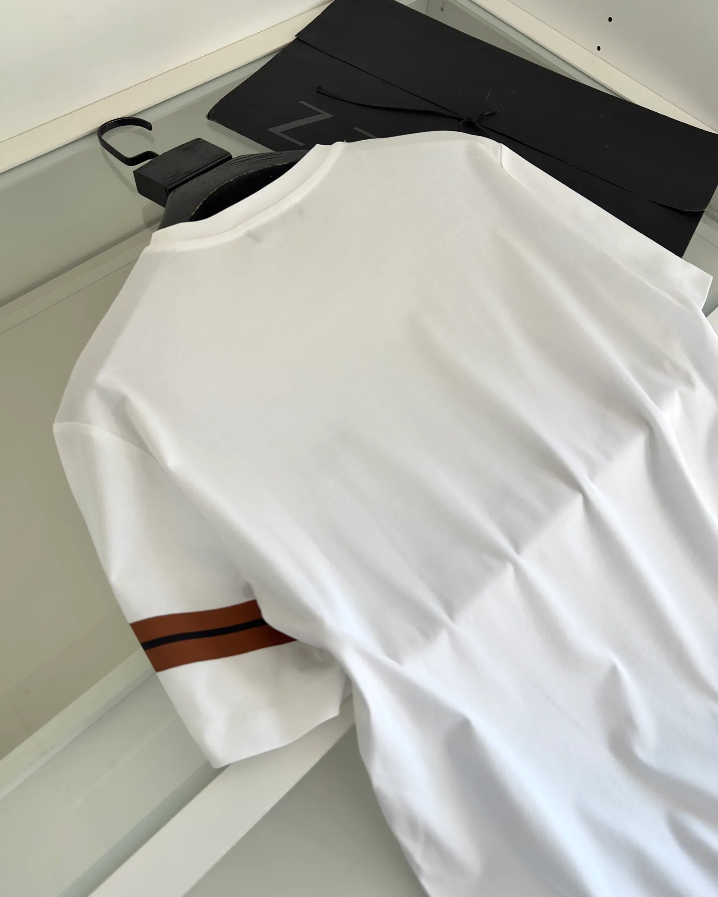 Особенности дизайна включают оригинальные детали: полоски на манжетах и аккуратную вышивку с буквами на груди, которые добавляют ей характер и выделяют среди базовых моделей. Футболка — классика, которая остаётся актуальной из года в год.