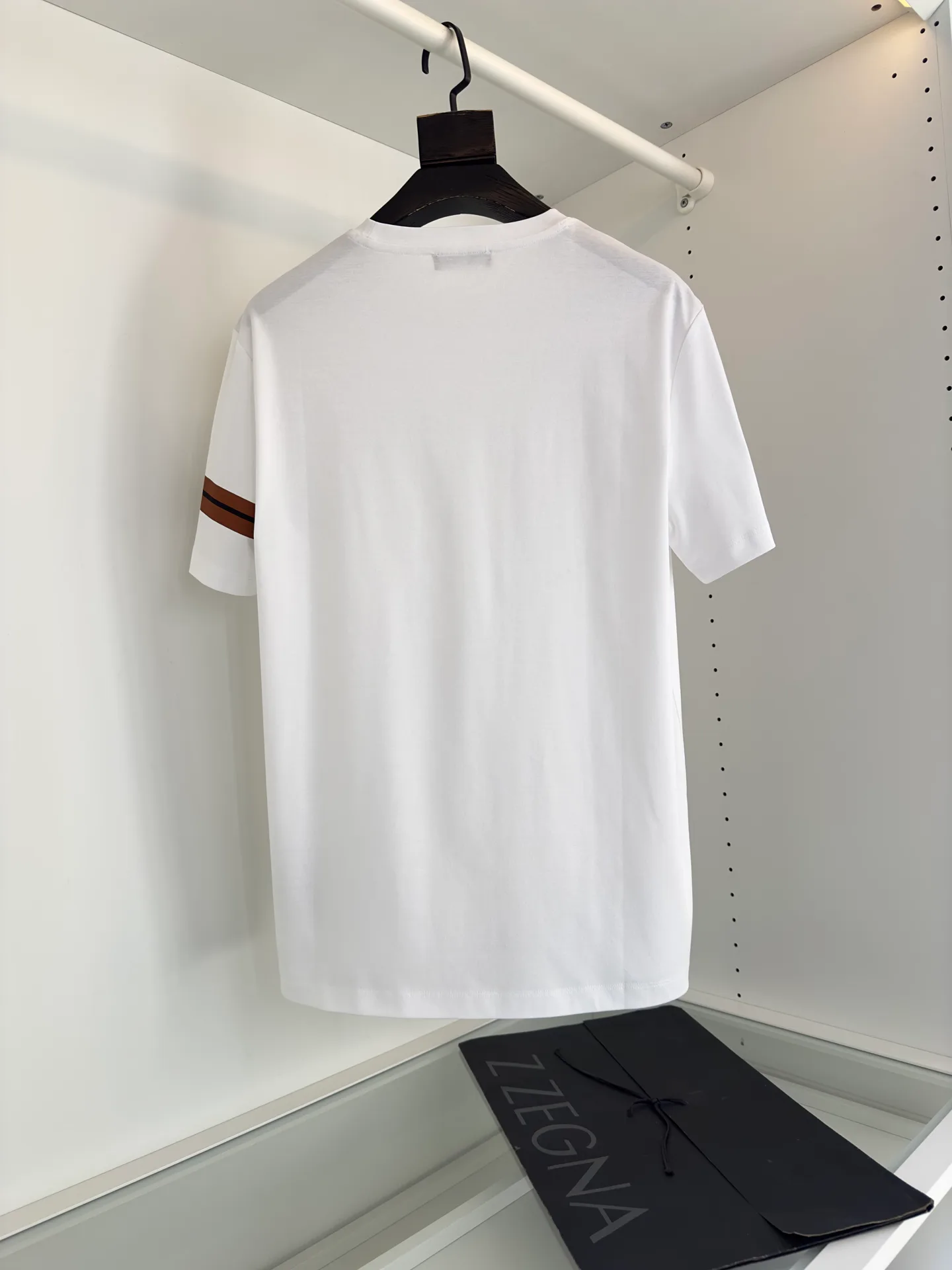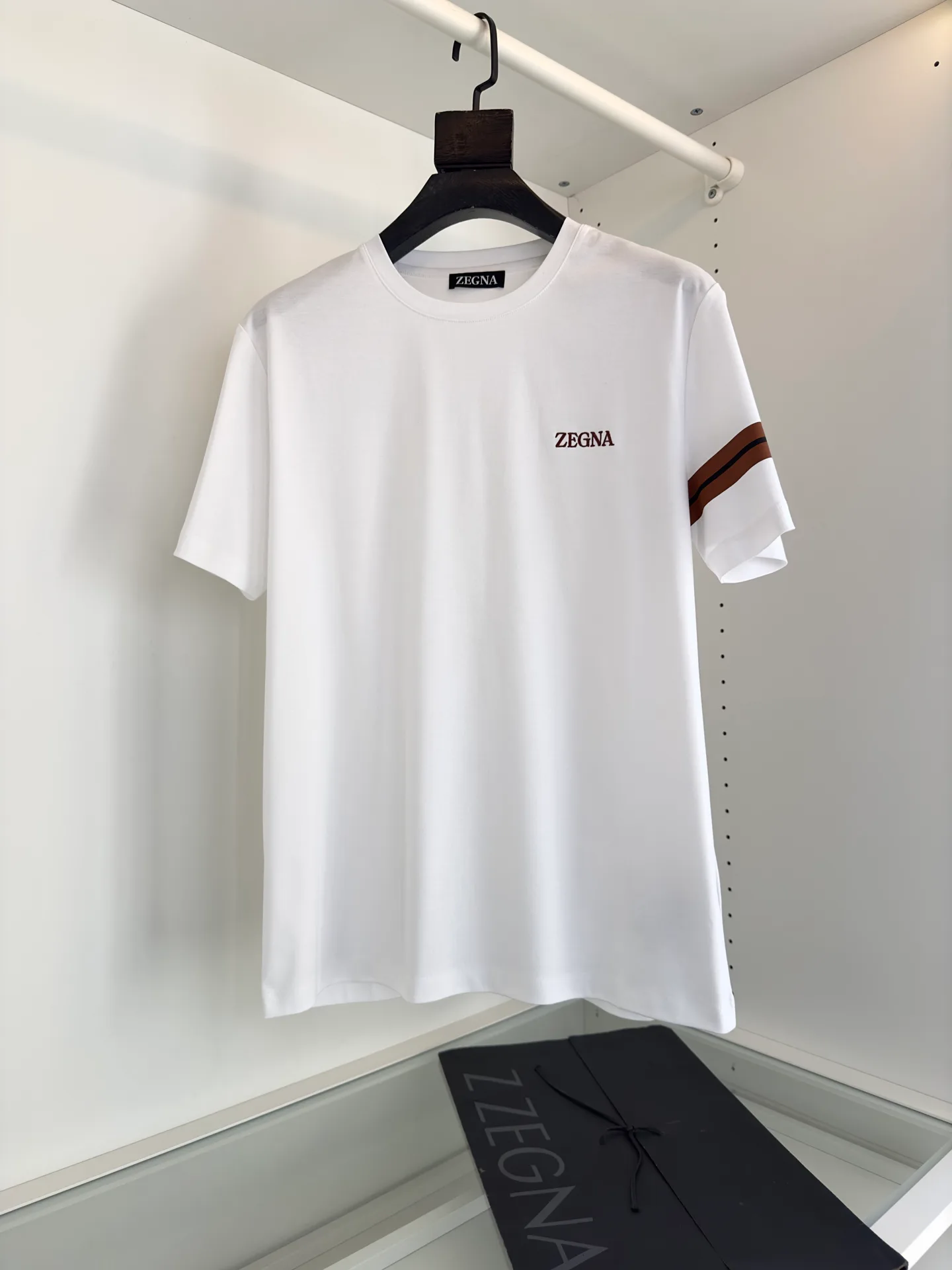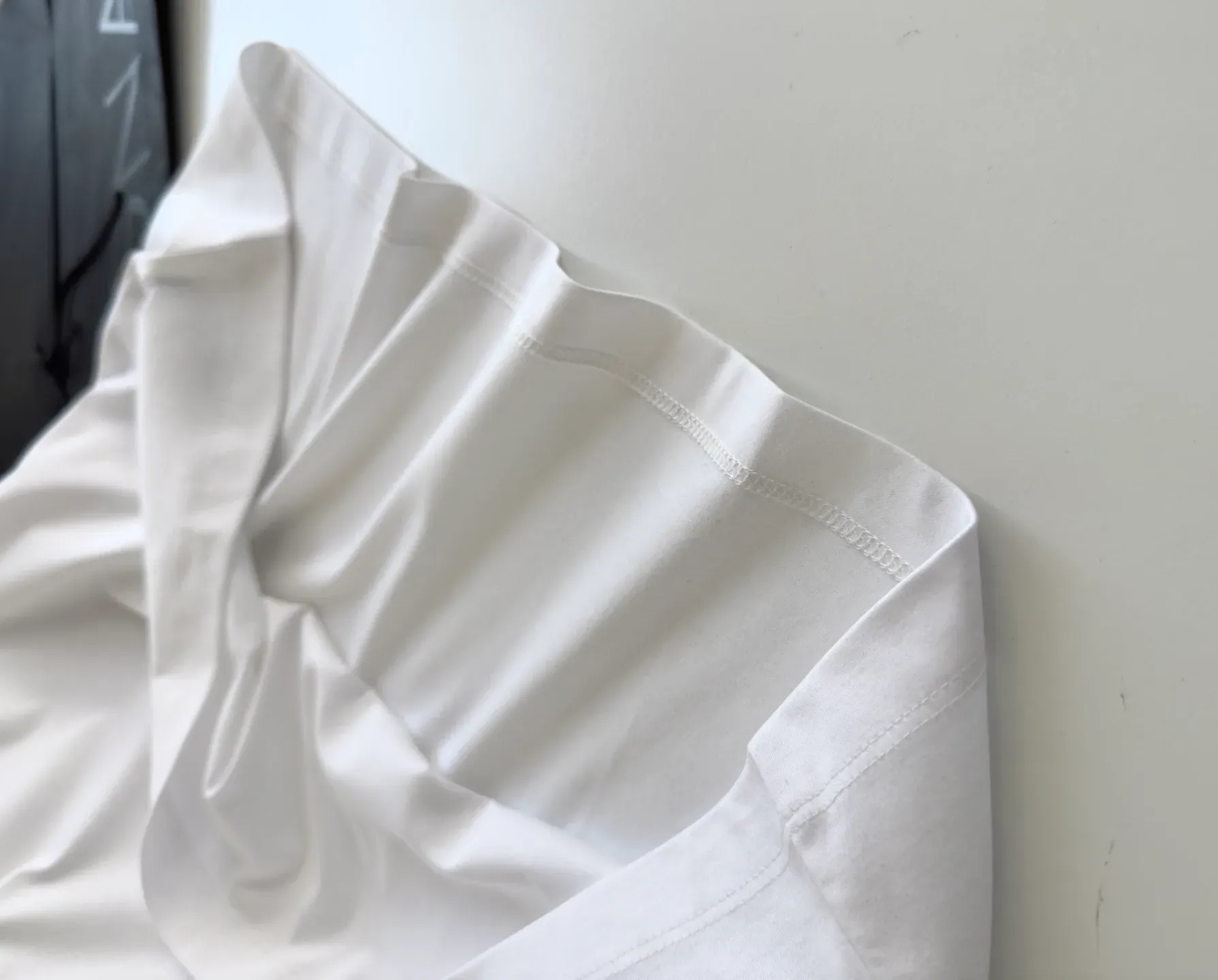 Особенности дизайна включают оригинальные детали: полоски на манжетах и аккуратную вышивку с буквами на груди, которые добавляют ей характер и выделяют среди базовых моделей. Футболка — классика, которая остаётся актуальной из года в год.