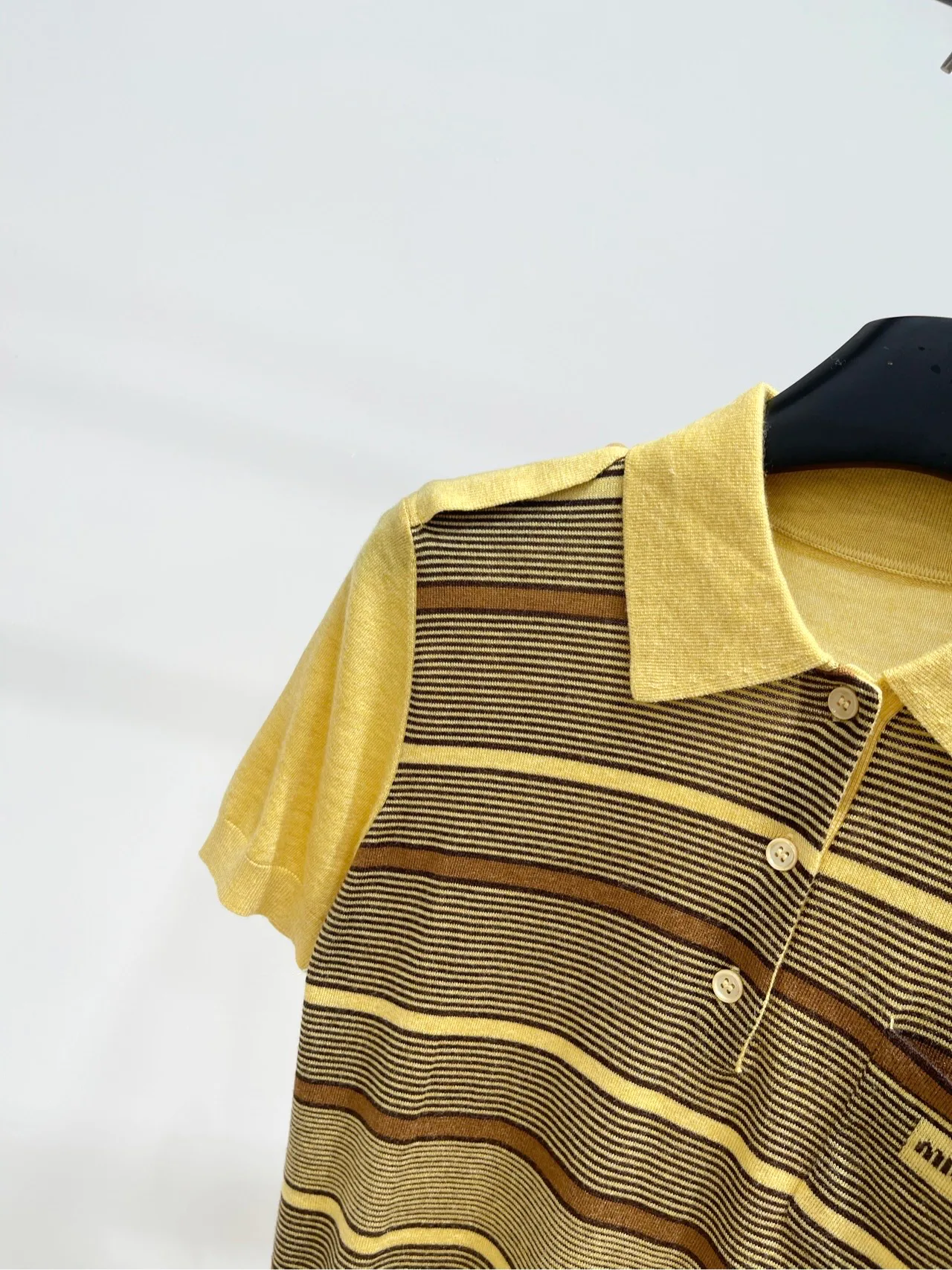 Футболка выполнена в нежно-желтом цвете, который добавляет яркость в любой образ. Изюминкой дизайна являются округлые плечики с перламутровыми пуговицами, пришитые к плечам, что придает изделию особую элегантность. На груди расположен накладной карман с вышитым логотипом, что добавляет индивидуальности модели.