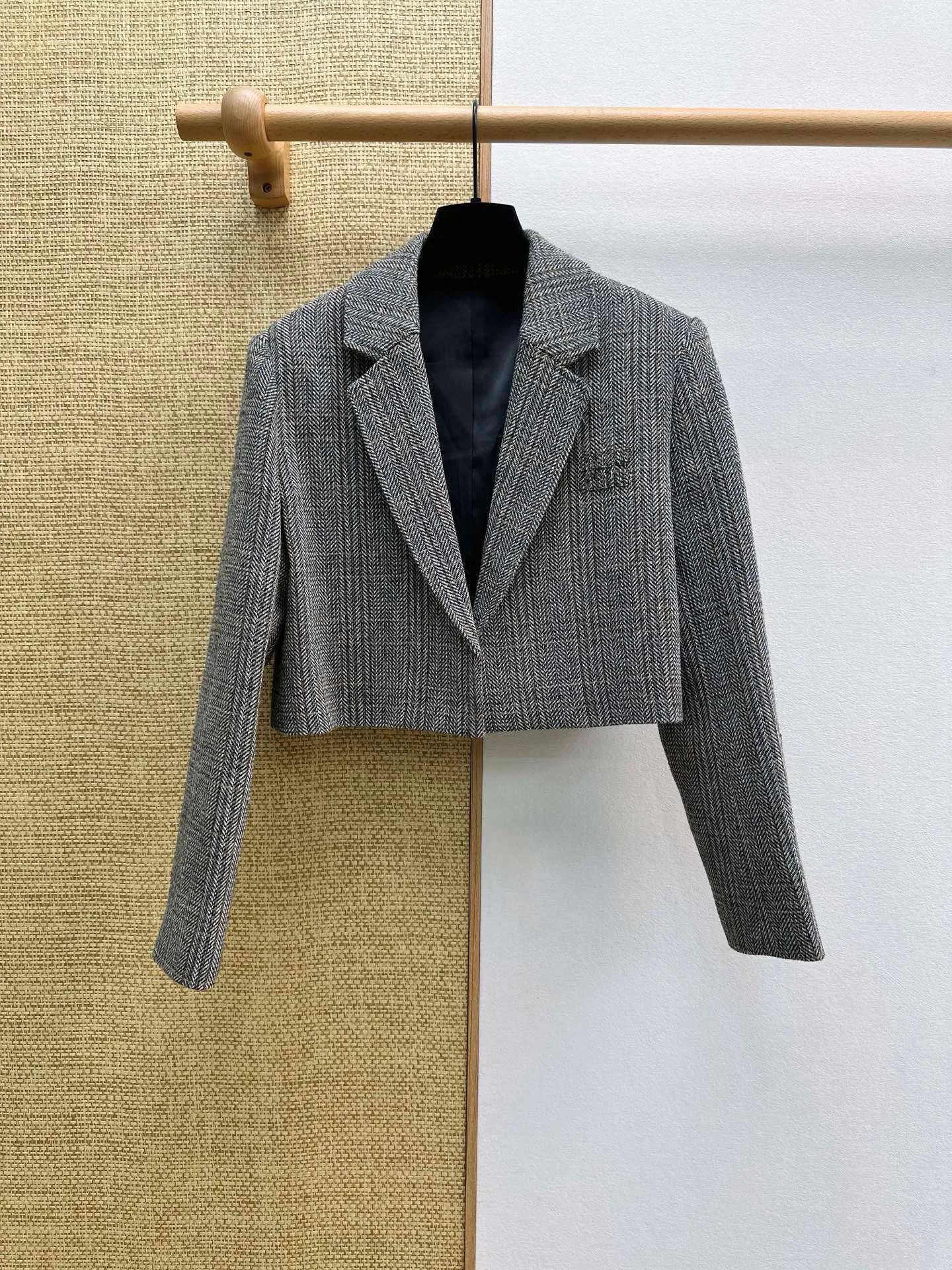 Жакет женский MIU MIU — короткая модель из коллекции ранней весны в стиле академической элегантности. Изделие выполнено из качественной шерстяной ткани на заказ, с выраженной текстурой и ретро-орнаментом. Чёткая полоска и подобранный тон подчёркивают образ, а конструкция с прямыми плечами и объёмным кроем создаёт стройный силуэт.