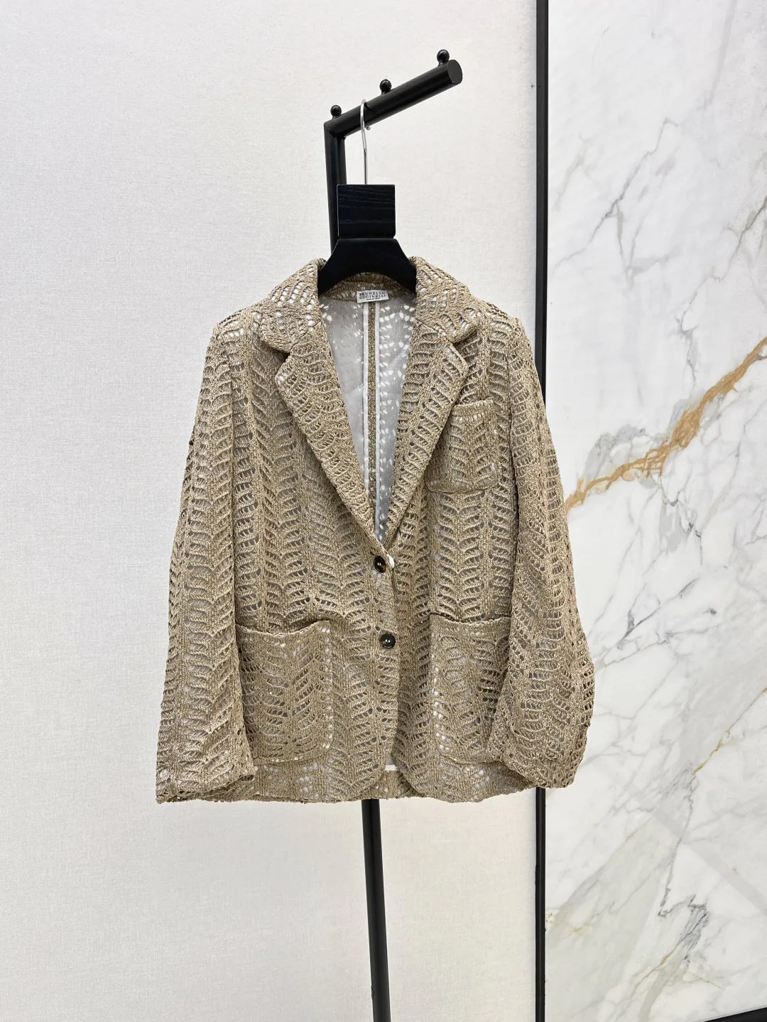 Классический и элегантный силуэт подчеркивает уверенность владельца и подходит для различных типов фигуры. Жакет выглядит стройно благодаря вниманию к линии и пропорциям. Он может легко сочетаться с классическими брюками или юбкой, а также с лаконичным топом для создания современного образа.