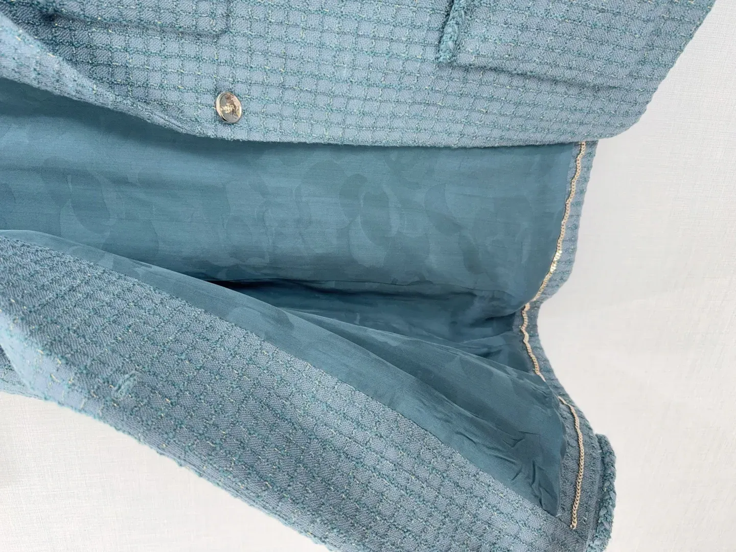 Модель предназначена для делового и элегантного образа. Доступные размеры S, M, L соответствуют стандартной посадке бренда. Пиджак можно комбинировать с классическими брюками или юбкой нейтральных тонов, а также использовать как самостоятельный элемент для повседневных образов.