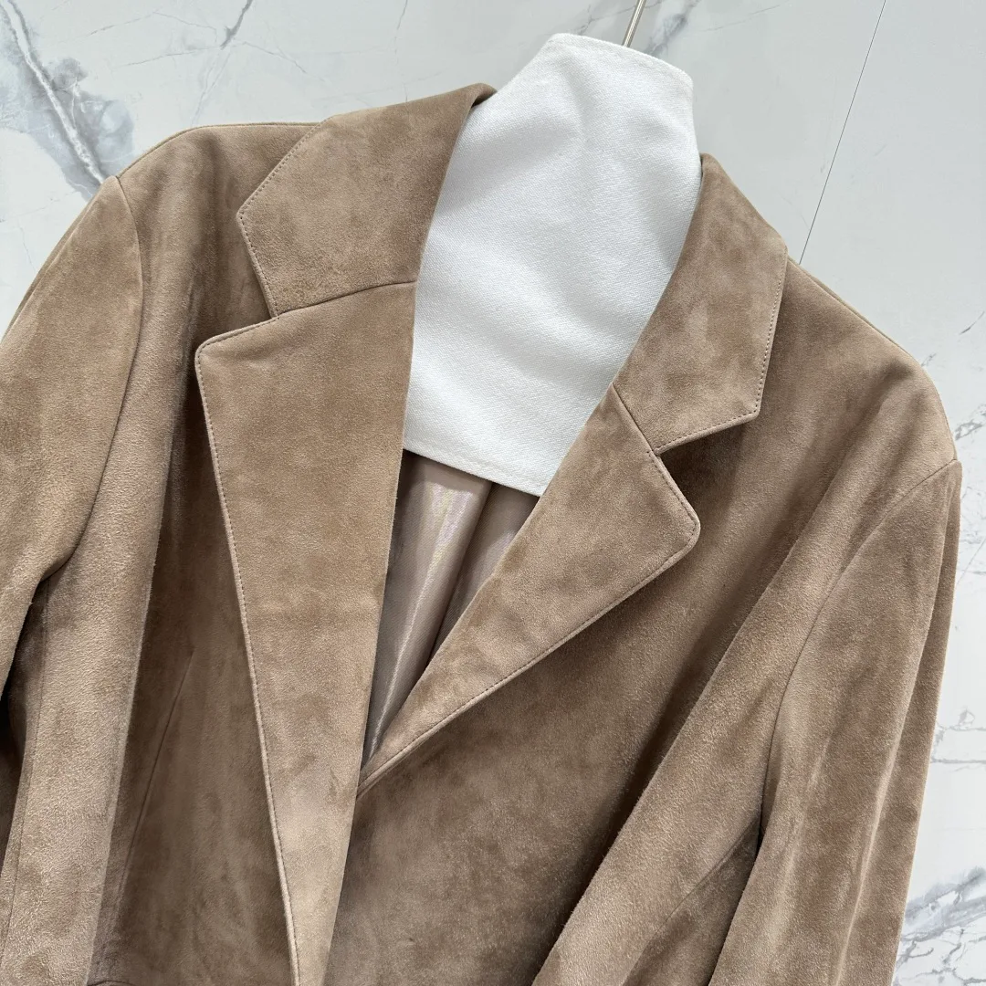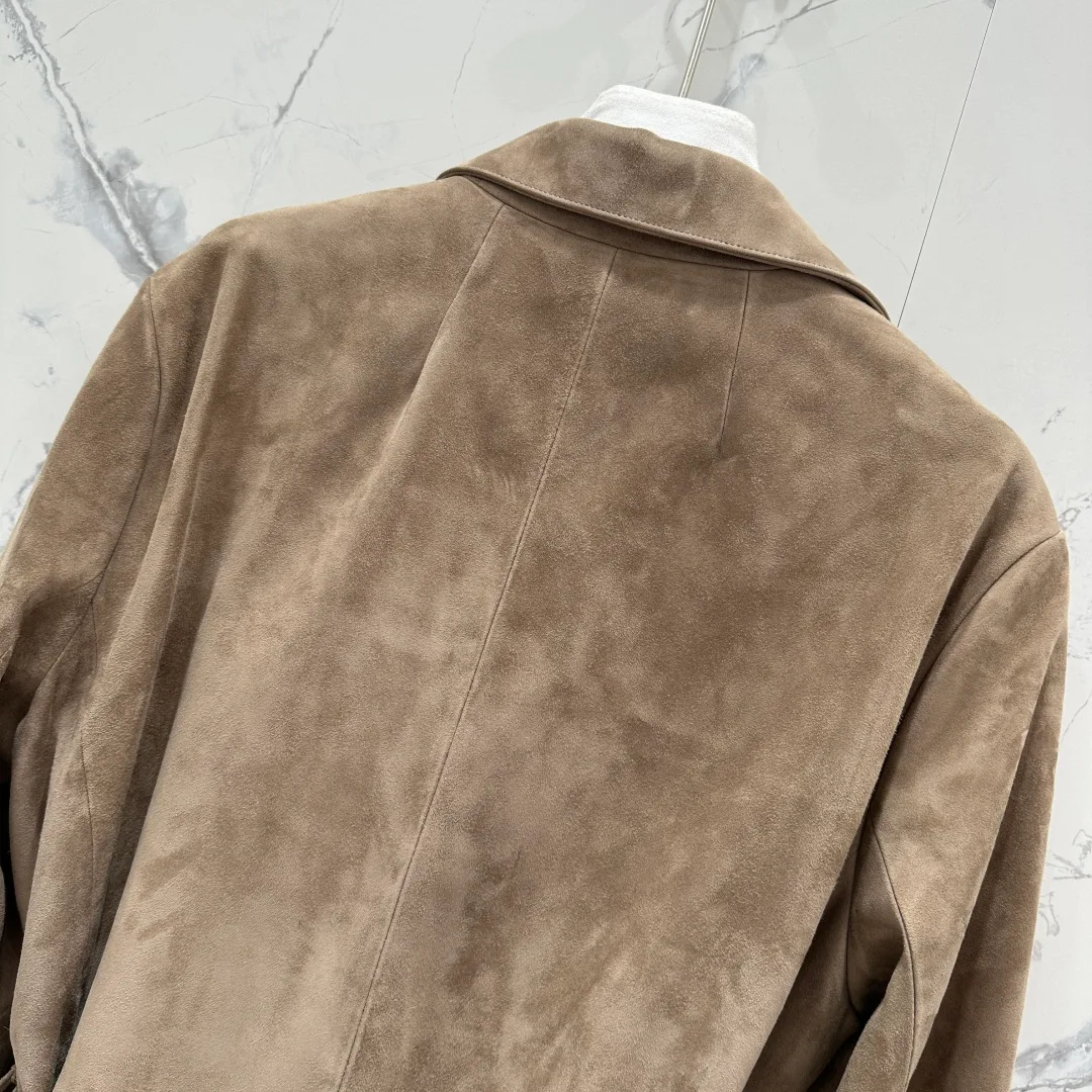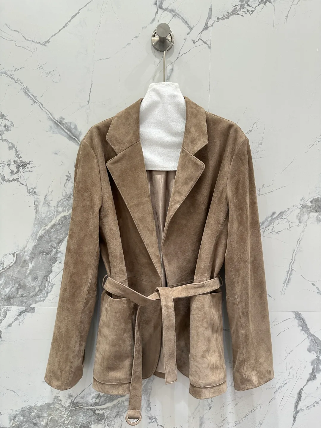Пиджак оснащён оригинальным поясом, который позволяет легко комбинировать его с брюками, юбками и платьями. Размеры от S до XL, образец указан на размере M с обхватом груди 102 см и длиной изделия 68 см. Использование высококачественной кожи обеспечивает долговечность и роскошный вид. Уход за изделием требует бережного отношения к материалу.