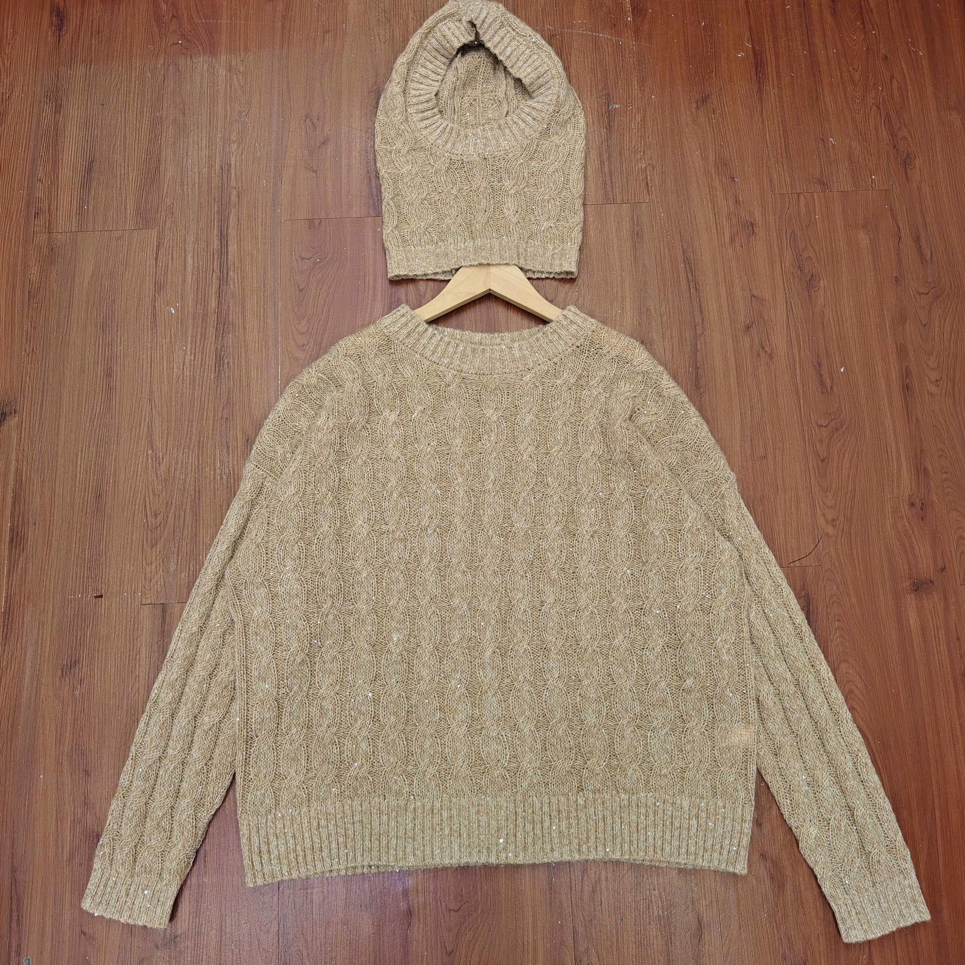 Цвет светло-карамельный универсален и легко сочетается с различными предметами гардероба, такими как джинсы и кожаные куртки. Набор подходит для холодного времени года, обеспечивая тепло и стильный вид.