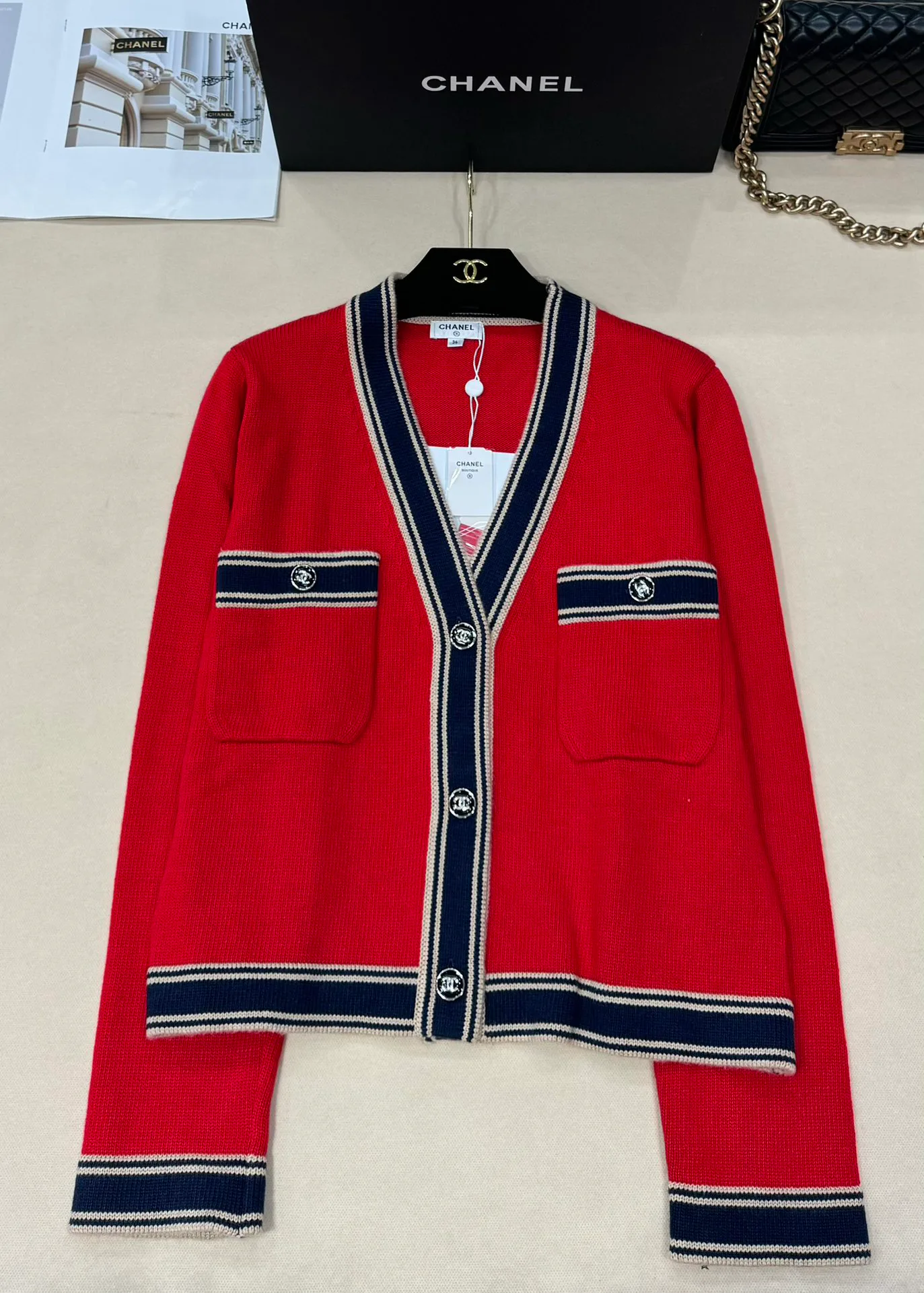 Кардиган в базовом красном цвете дополнен темно-синими акцентами и молочно-белой окантовкой. Два кармана обеспечивают практичность, сохраняя стильный вид. Размерный ряд включает S, M, L, что позволяет выбрать подходящий вариант. Уход за изделием предполагает бережное обращение для сохранения структуры трикотажа.