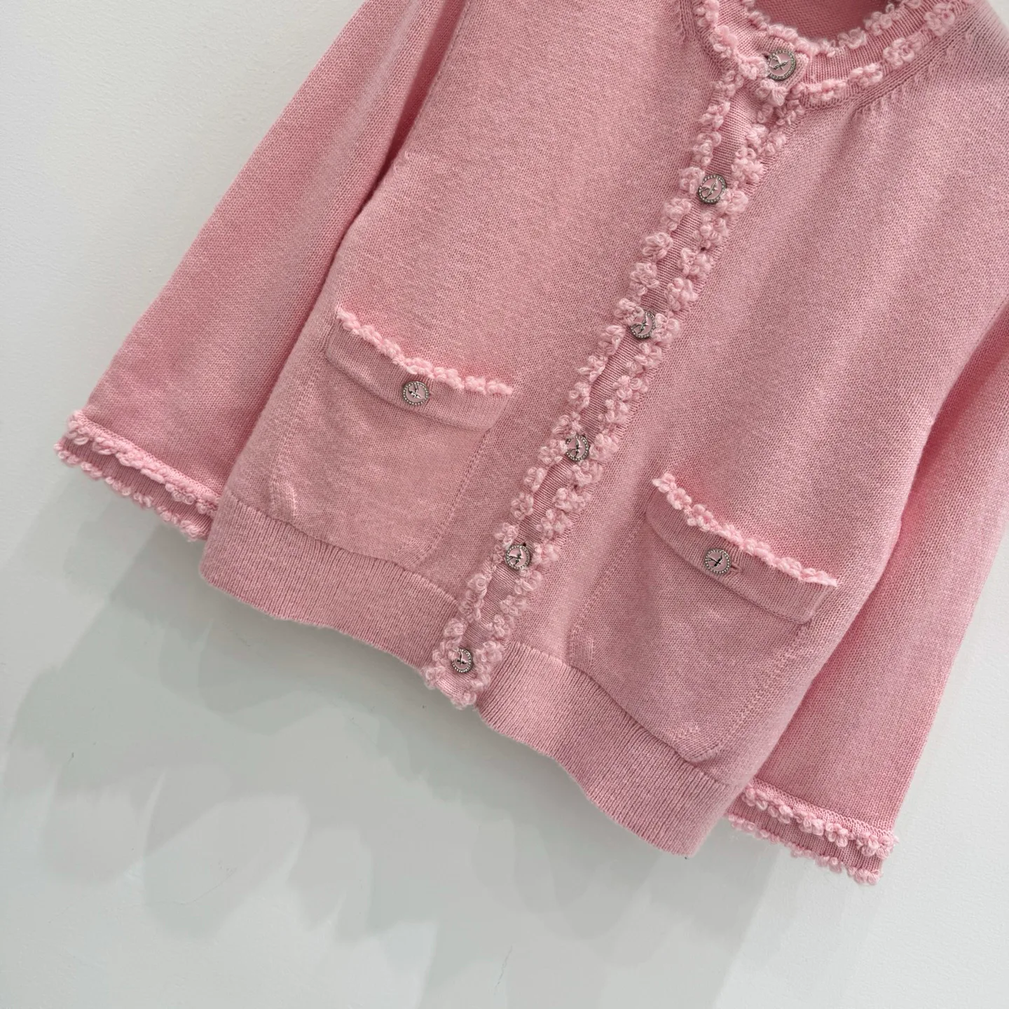 Уникальный дизайн с декоративной ручной вязкой добавляет изысканности, а короткий крой подчеркивает фигуру и визуально делает её стройнее.