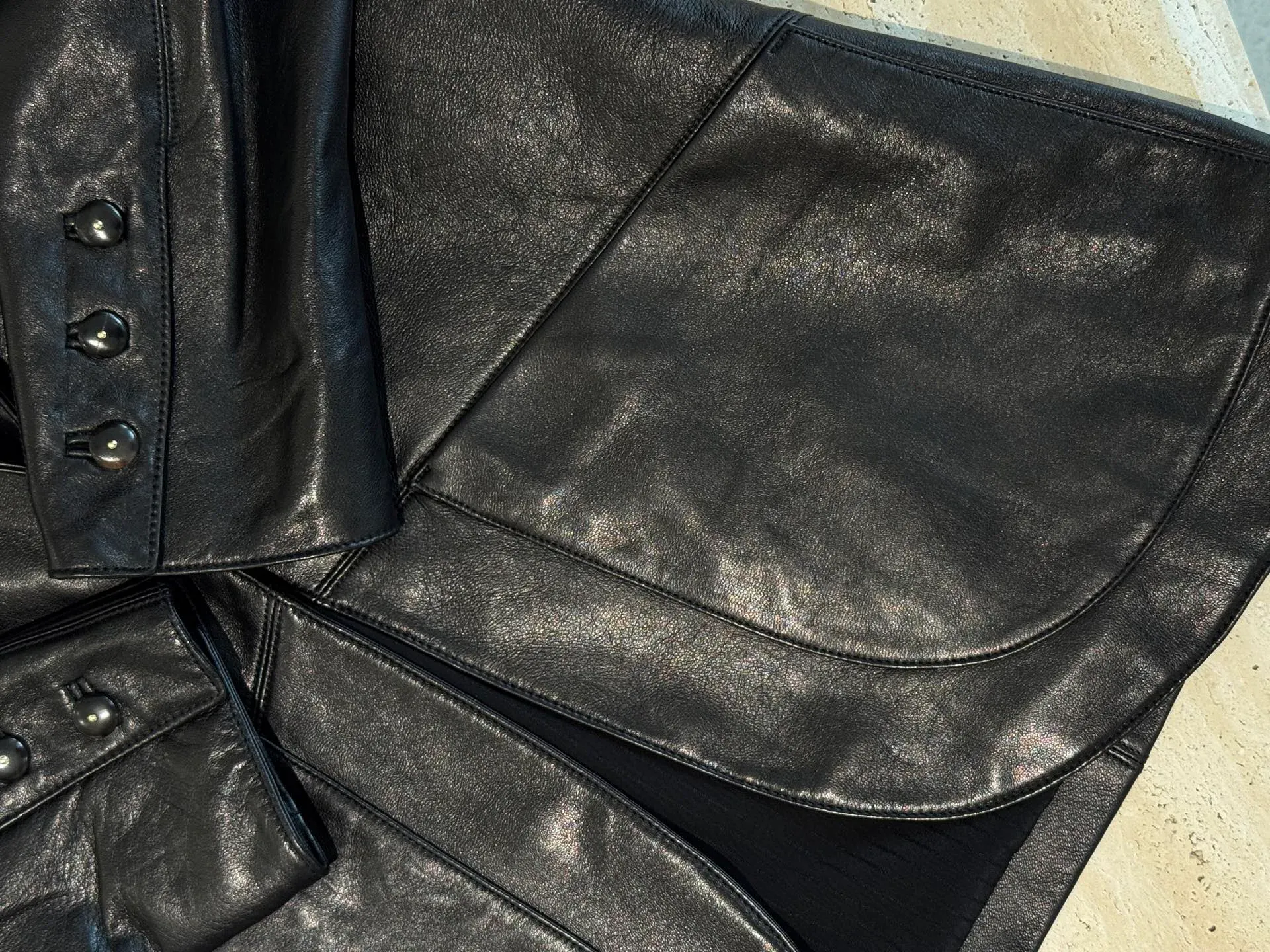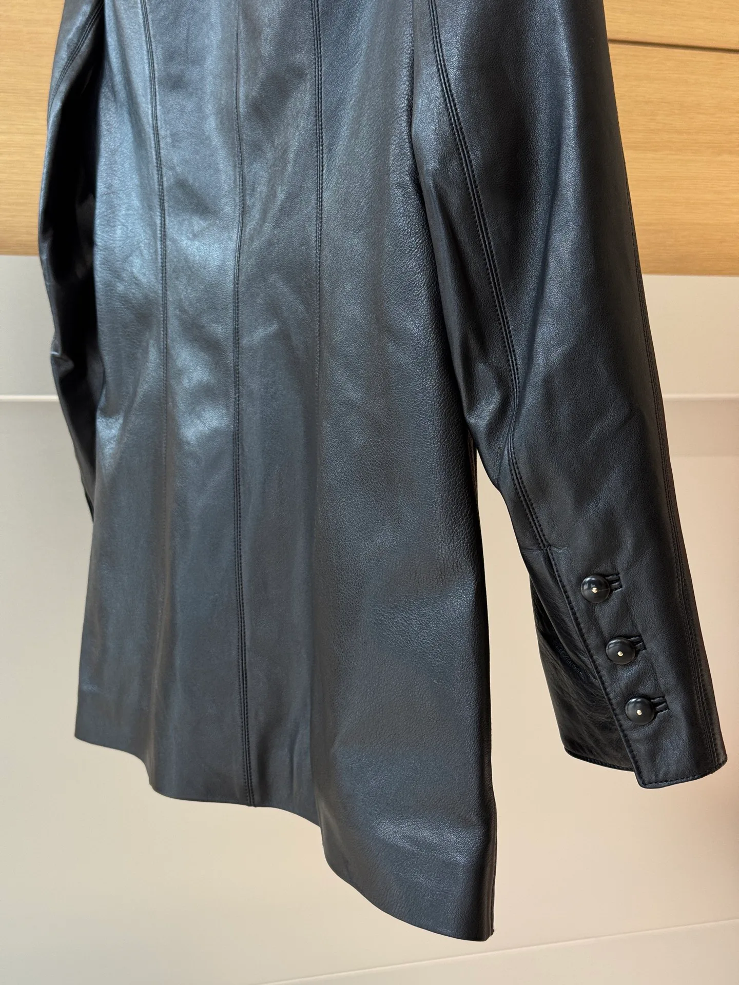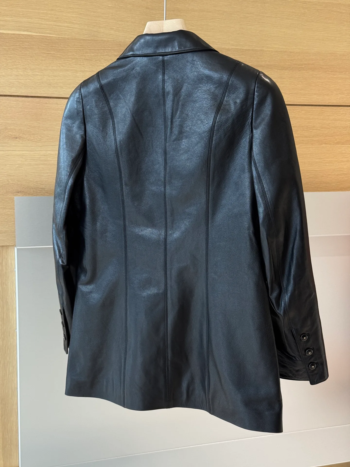 Особенности и стиль: Винтаж Chanel 1990‑х годов — идеальный выбор для ценителей редкого кожаного гардероба. Кожа производится на крупной испанской фабрике с очень высоким уровнем мастерства обработки кожи, что обеспечивает особую глубину цвета и текстуры. Подчеркнет образ с простыми блузами и брюками, а также добавит стильной строгости офисным или вечерним лукам благодаря чёткой линии кроя и качественной фактуре материала.