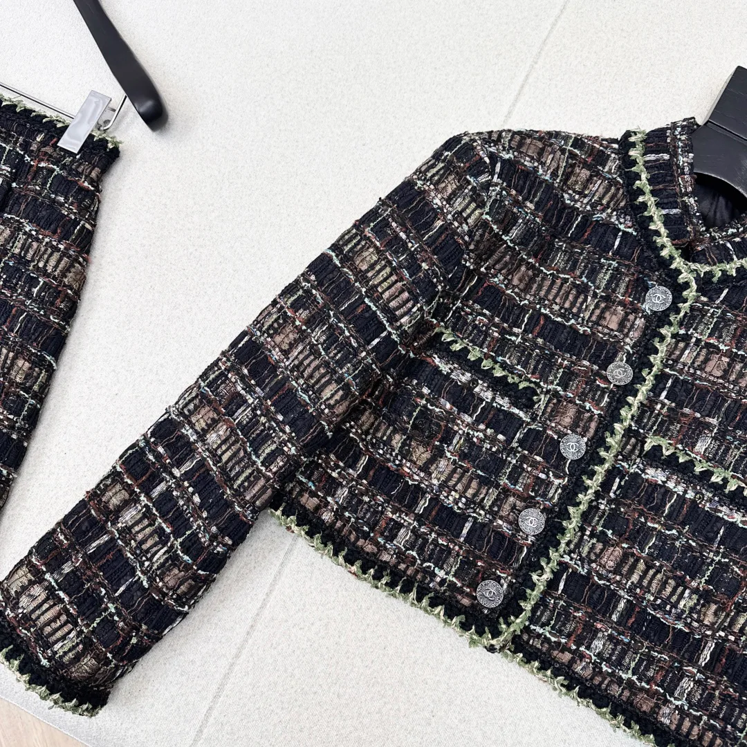 Костюм хорошо смотрится как в офисе, так и в повседневной жизни. Рекомендуется сочетать с нейтральными блузами или водолазками и дополнить элегантными ботильонами.