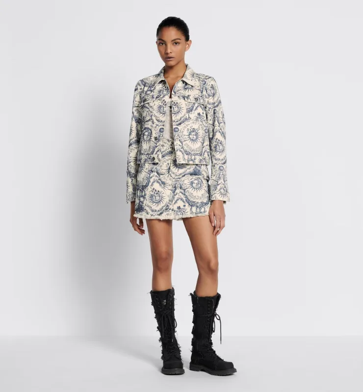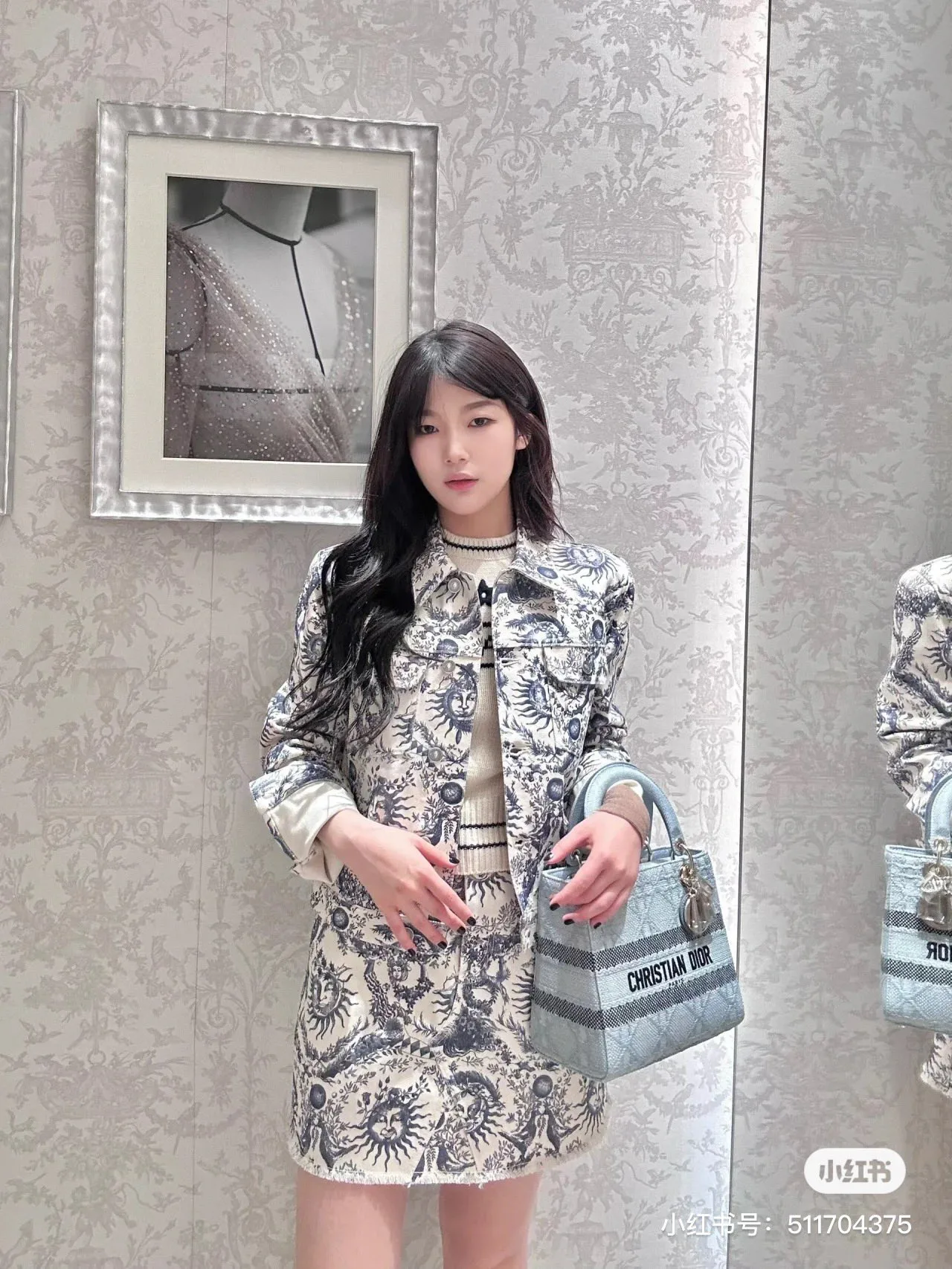 Нижний край декорирован ручной бахромой, а на спинке расположен логотип CHRISTIAN DIOR. Костюм оснащен карманами спереди и сзади для удобства. Подходит для городского повседневного стиля и нарядных образов в зависимости от аксессуаров.