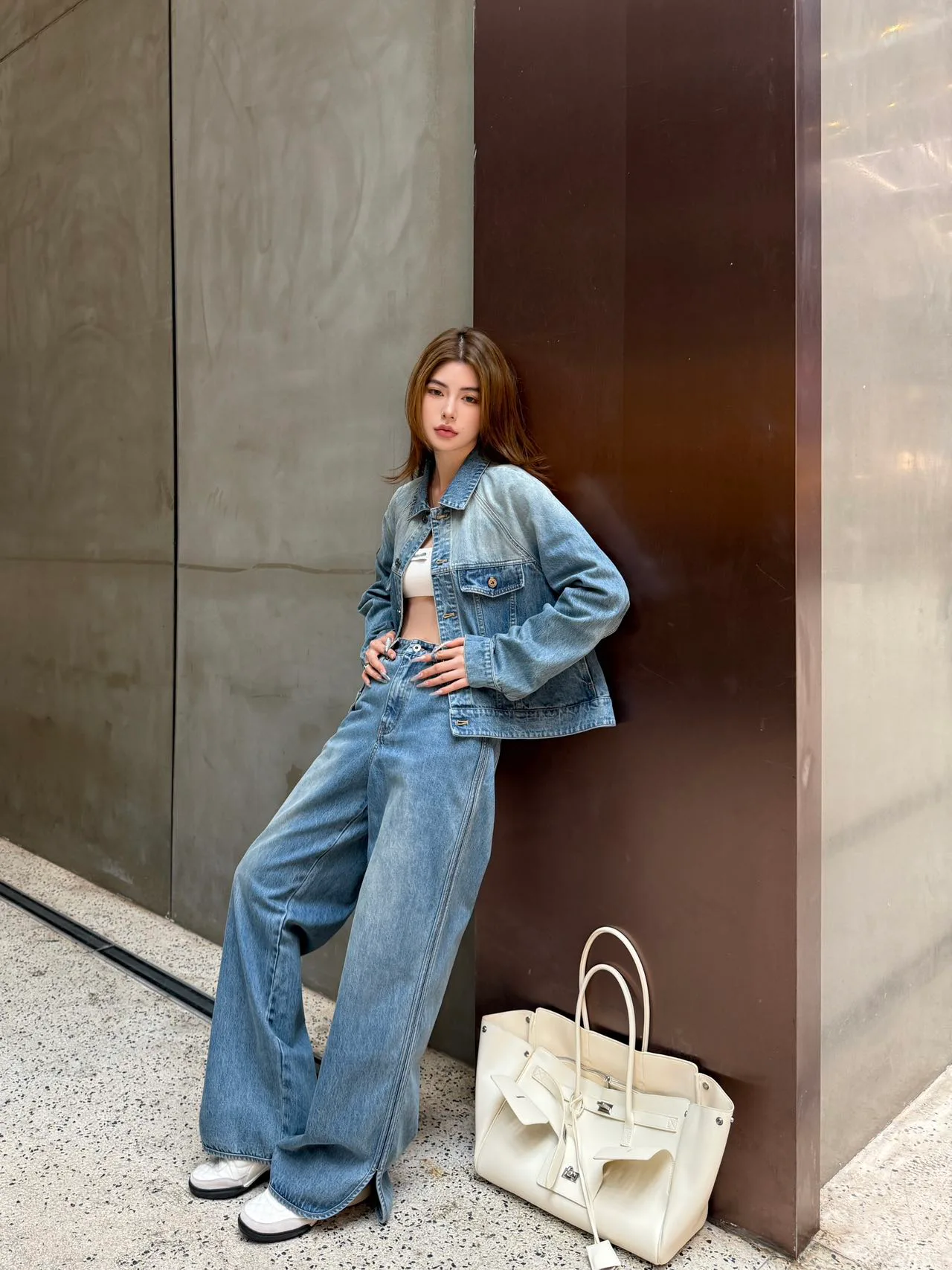 Костюм подходит для повседневной городской носки и стиля casual. Его можно сочетать с простой футболкой или топом и белыми кедами для свежего образа. Уход за изделием предполагает стирку при низкой температуре в щадящем режиме, без отбеливания, с глажением при средних температурах через тканевую защиту.