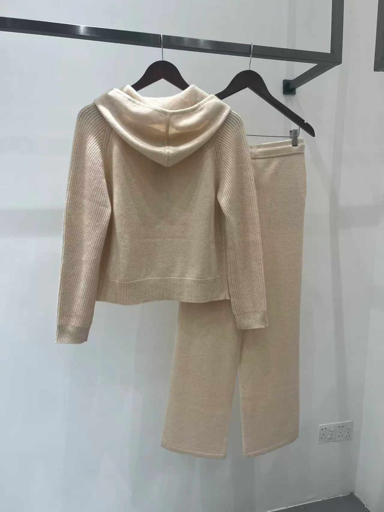 Комплект подходит для офисных будней и свободного времени. Лаконичный силуэт легко комбинируется с различными элементами гардероба, такими как топы и блузки. Кашемир приятен к телу и обеспечивает уют в прохладные дни.