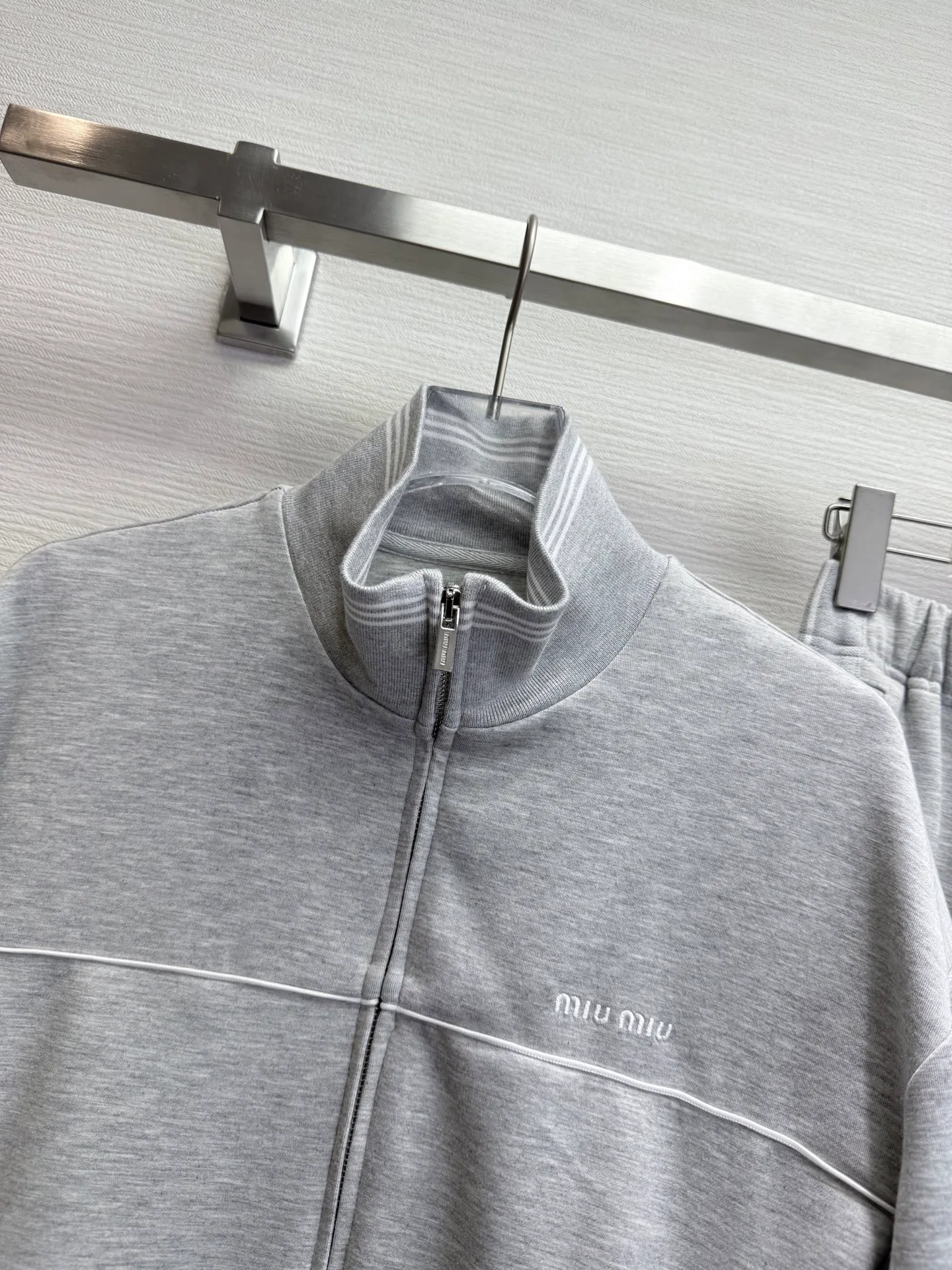 Новая коллекция весна–лето 2025 от MiuMi: стильный комплект куртки-ветровки и широких брюк. Основной образ — повседневный, комфортный крой и продуманные детали, которые делают образ непринужденным и выразительным.