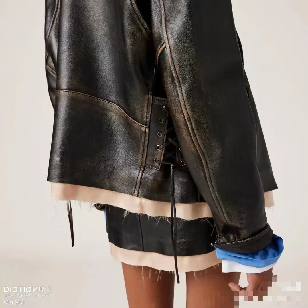 Подкладка светлого цвета контрастирует с основной черной кожей, добавляя стильный элемент в дизайн. Из натуральной кожи куртка долговечна и сохраняет вид на долгое время.