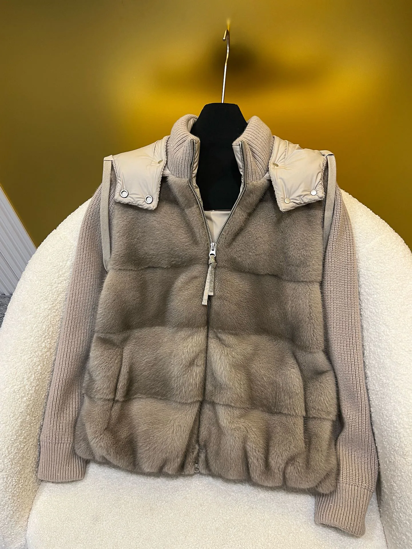 гусиный пух, кашемировая пряжа, мех норки