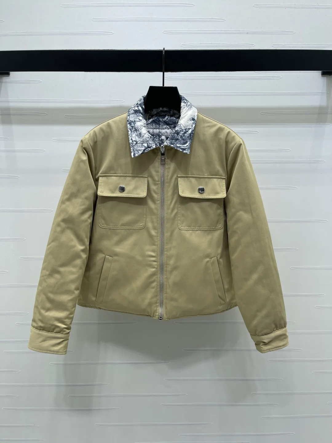 Куртка женская CHRISTIAN DIOR — двусторонняя утепленная куртка на молнии с лацканом, выполненная из нейлона, защищающего от ветра и влаги. С наполнителем она легкая и теплая; на одной стороне — однотонная ткань с принтом четырехлистного клевера и букв. На другой стороне — тисненый узор с природными элементами, изображающий растения и животных, который перекликается с пуговицами на груди. Куртка двусторонняя, воротник с лацканом, карманы на молниях добавляют практичности. Доступны размеры S, M и L; куртка выполнена в одном цвете и подчёркнута фирменным стилем.