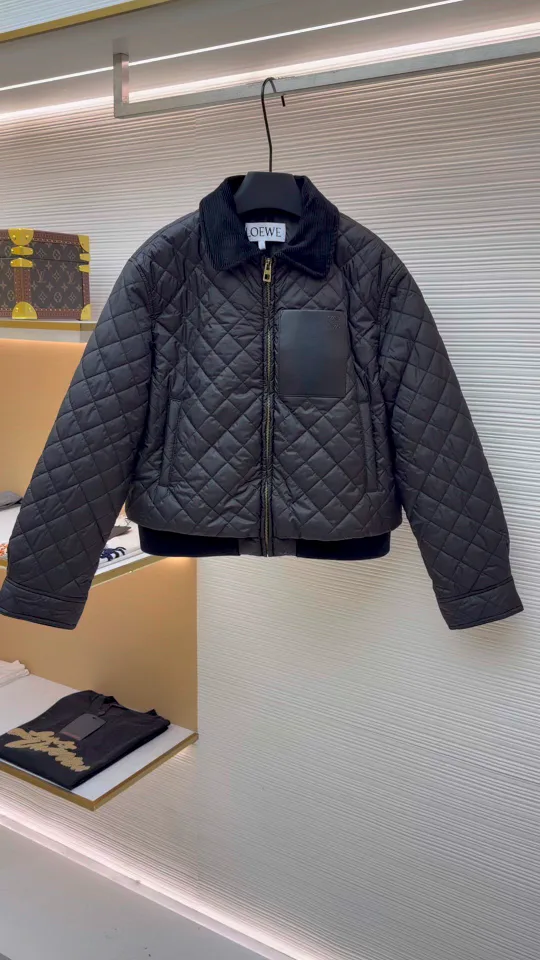 Куртка женская LOEWE — куртка с плотной нейлоновой основой, выполненная в чёрном цвете с ромбической стёжкой. Воротник, рукава и низ выполнены из тёмно-коричневых деталей с текстурой, толщина ткани около 350 г/м². Основной материал — нейлон высокой плотности, окраска экологичным способом обеспечивает прочность цвета к стирке и солнечному свету. В дизайне использована тёмно-коричневая кожа ягненка, края обработаны масляной отделкой; швы ровные и аккуратные, ткань приятная на ощупь и цвет однороден. Размеры: 36, 38, 40; модель подходит для разных образов и ситуаций.