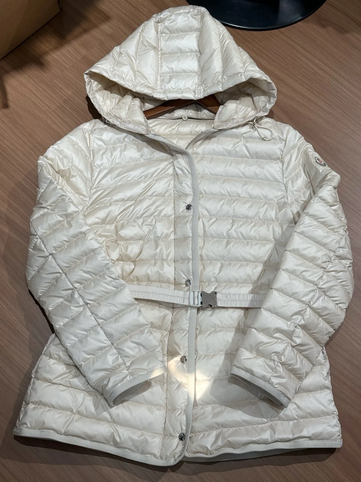 Куртка женская MONCLER — куртка из осенне-зимней коллекции Oredon с коротким приталенным кроем и наполнителем, на 90% состоящим из белого гусиного пуха. Фирменный дизайн характеризуется коротким приталенным силуэтом, который подчеркивает талию и элегантную линию фигуры. Двухзамковая система застежки обеспечивает защиту от ветра и чистый силуэт за счет сочетания молнии и кнопок. Съемный капюшон позволяет носить куртку двумя стилями: снятая — образ с небольшим круглым воротником, надетая — более свободный защитный стиль. Размеры 1–3.