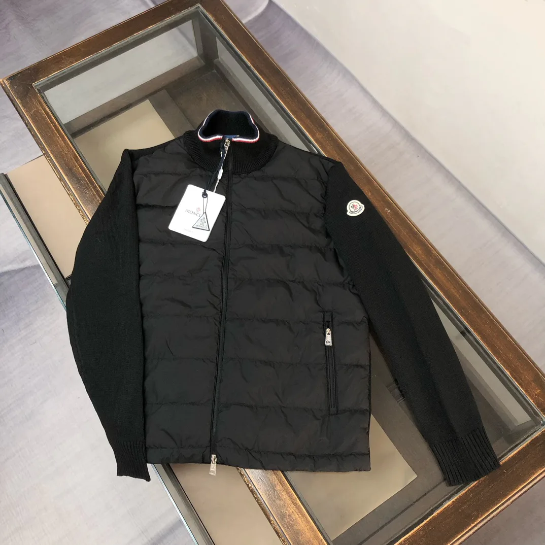 Куртка женская MONCLER — классическая модель с высоким воротником, выполненная из шерстяного трикотажа с вставками и пуховым наполнителем.