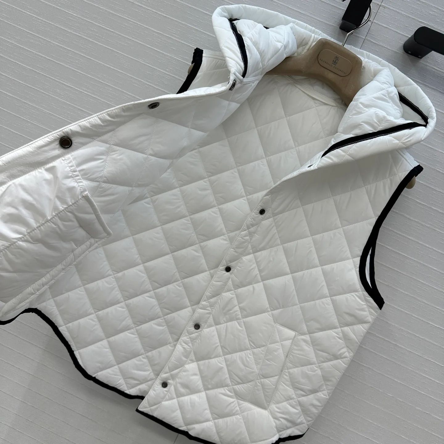 Ключевые особенности включают капюшон с обводкой лентой, придающей молодёжный образ и аккуратную посадку. Импортированная технология стежки и 3D крой обеспечивают стильный вид и сохранение формы. Классический силуэт легко сочетать с джемперами и пальто, создавая многослойные ансамбли. Декоративная медная цепь на капюшоне добавляет стиля.