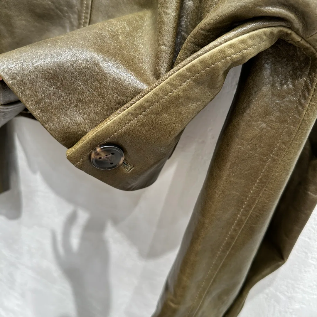 Куртка выполнена из 100% натуральной овечьей кожи, обладающей мягкой текстурой и высоким уровнем комфорта. Уникальное внимание к деталям проявляется в ручной работе: декоративный воротник, который легко снимается, выполнен в технике ручного плетения, что добавляет нотку роскоши и индивидуальности.