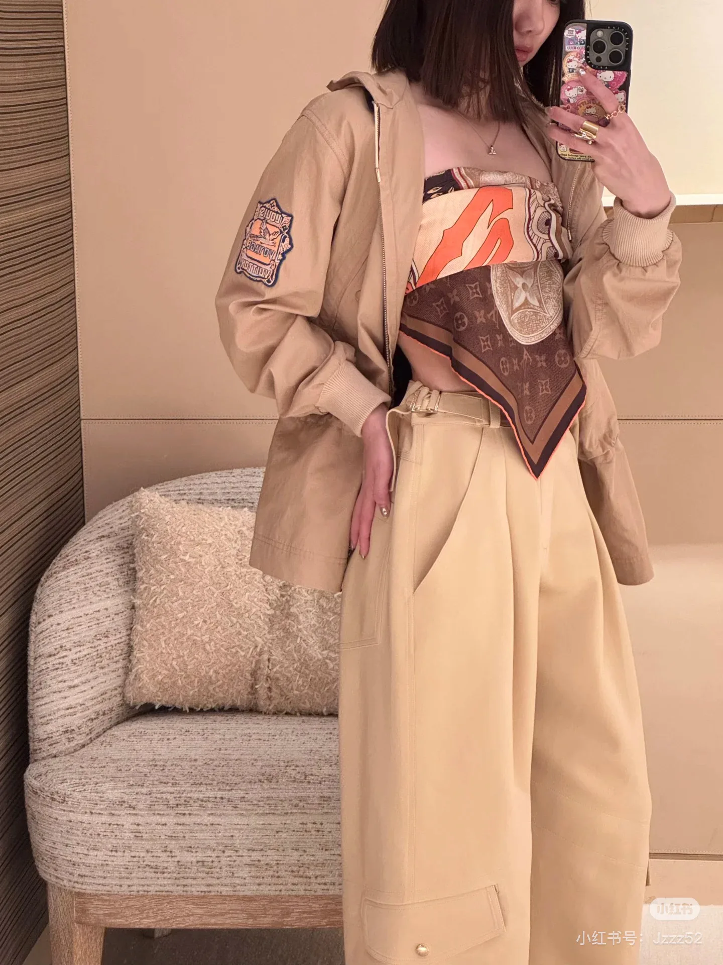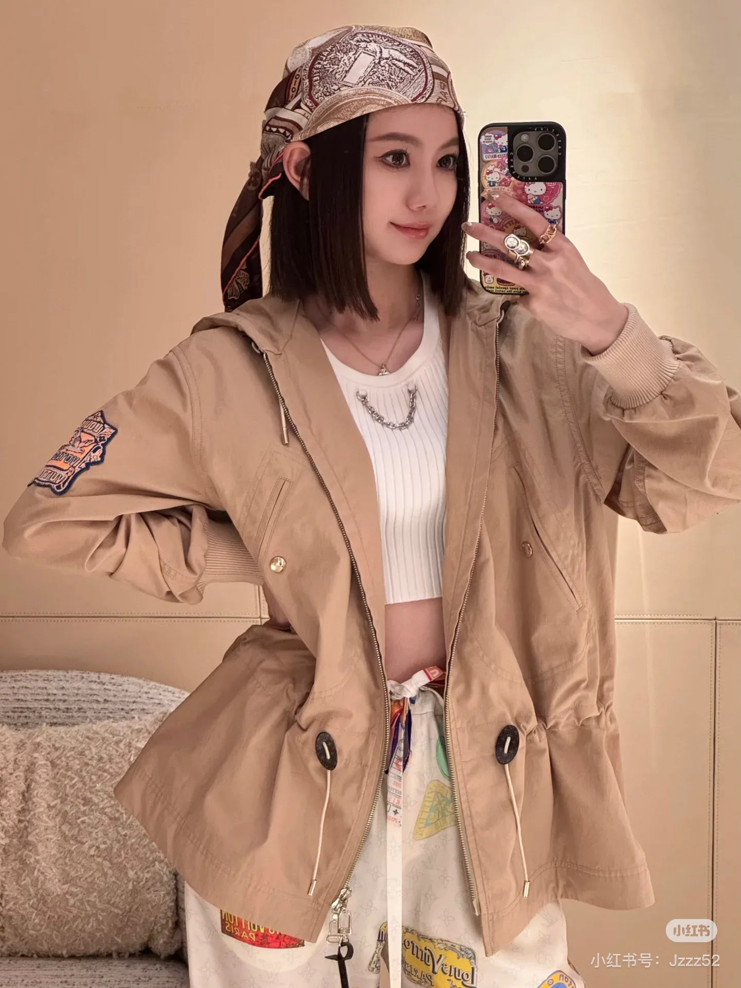 Куртка имеет свободный крой и эластичные манжеты, что обеспечивает хорошую посадку по фигуре и добавляет удобства в носке. Застежка-молния и кнопки не только функциональны, но и подчеркивают стильный дизайн изделия. Регулируемый пояс на шнурках позволяет легко адаптировать куртку под свои предпочтения и создавать различные силуэты.