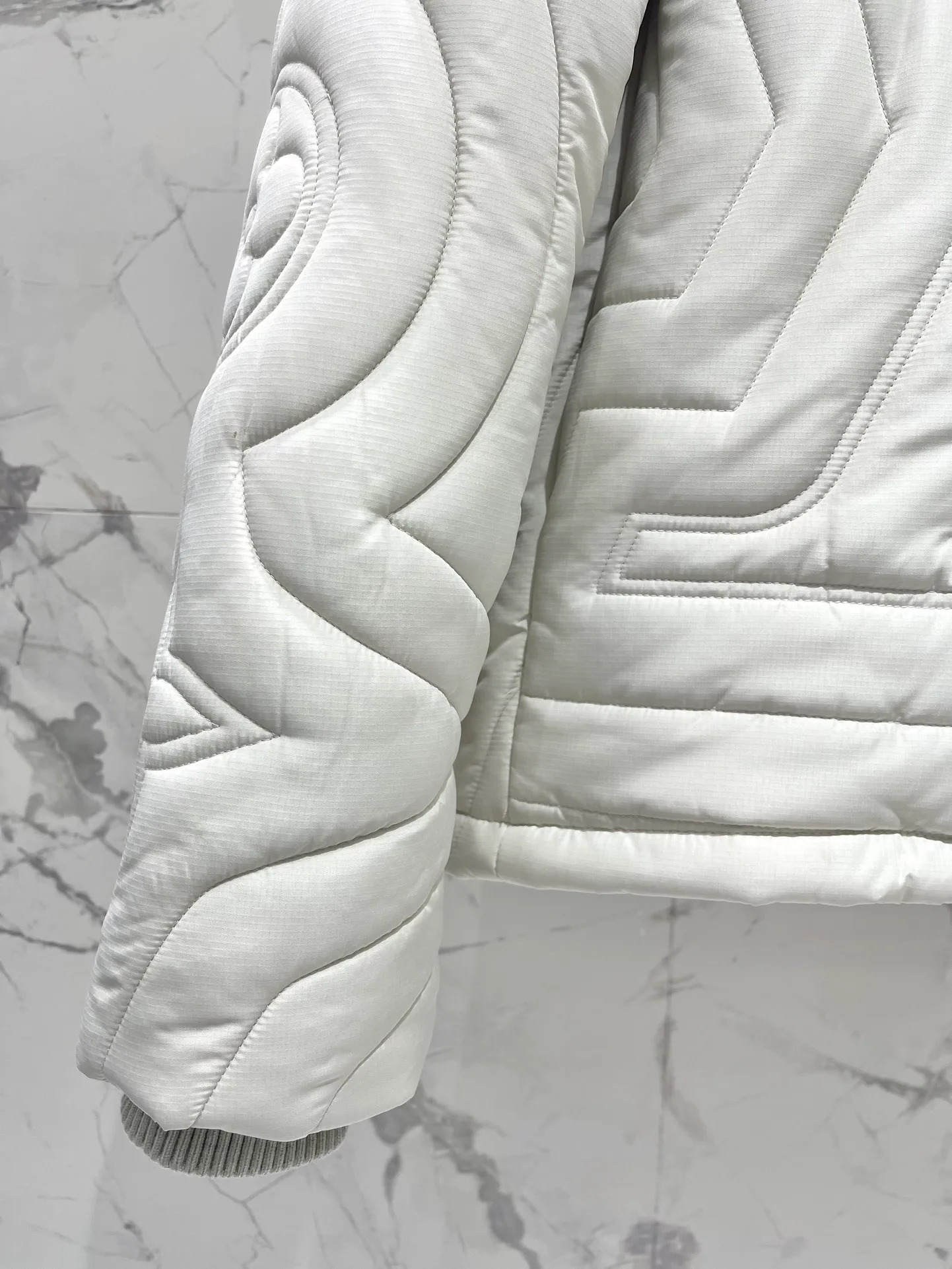 Внешний материал куртки мягкий и приятный на ощупь, позволяет чувствовать легкость и комфорт. Утеплитель с ватной подкладкой обеспечивает тепло без лишнего объема, сохраняя свободу движений. Дизайнерский акцент на вышивке из белой и дымчато-серой нити подчеркивает премиальность изделия. Цветовая палитра универсальна и сочетается с различными стилями гардероба.