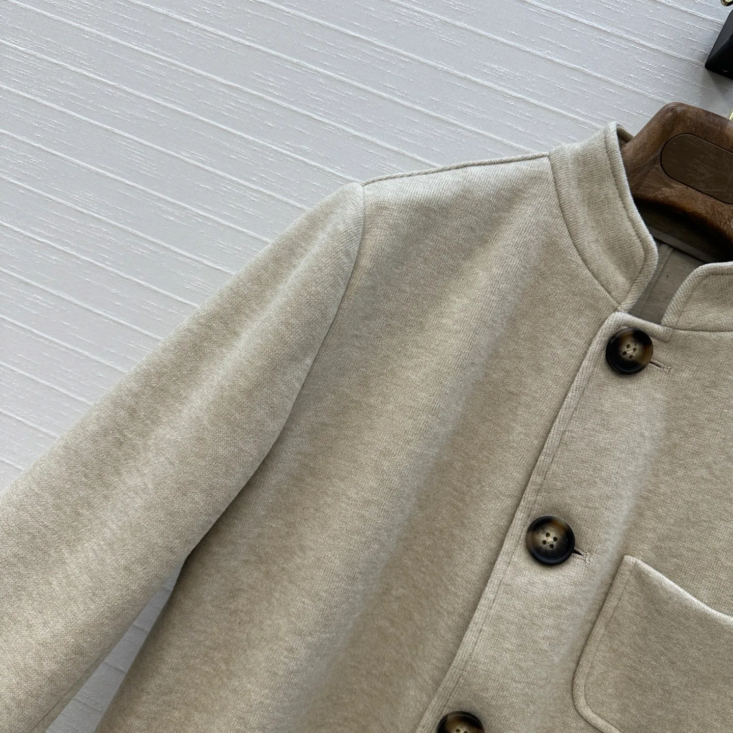 Классический и универсальный дизайн делает этот жакет отличным базовым предметом гардероба, который легко комбинируется с рубашками, блузками и брюками нейтральных тонов. Доступен в двух цветах и трёх размерах: S, M и L. Размер S имеет ширину плеч 35 см, обхват груди 92 см и длину изделия 58 см. Обратите внимание на аккуратный пошив, качество которого заметно в каждом стежке.