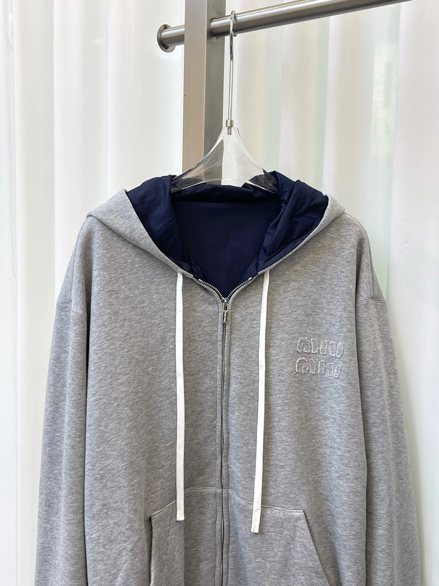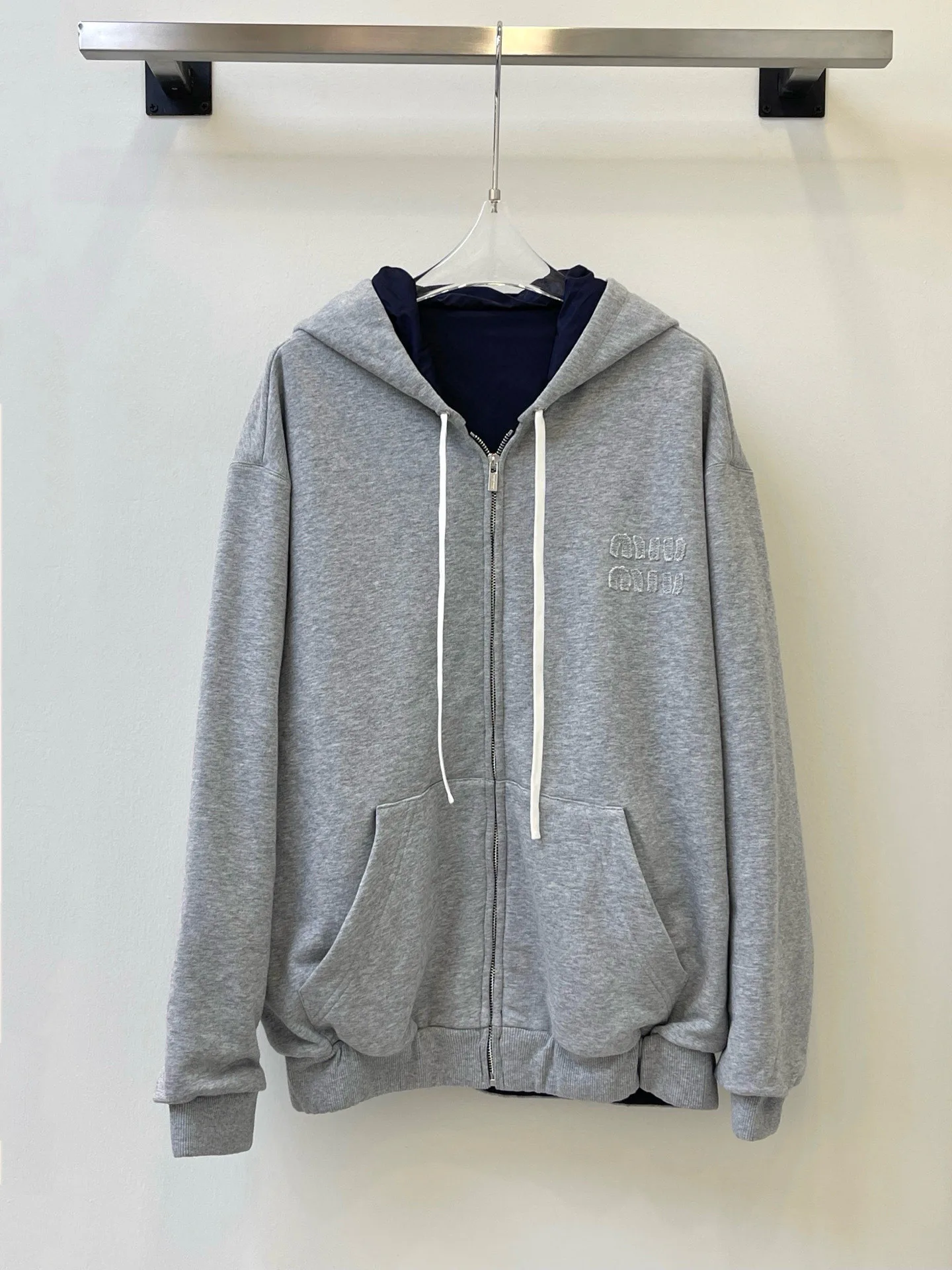 - Двусторонний дизайн: две лицевые стороны — темно-синий и светло-серый.