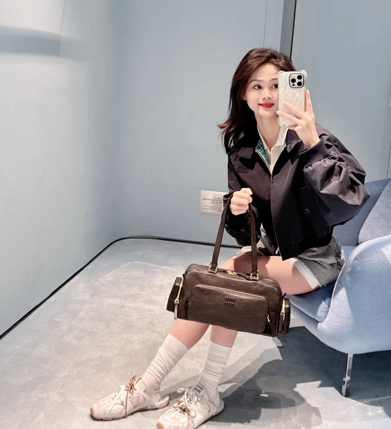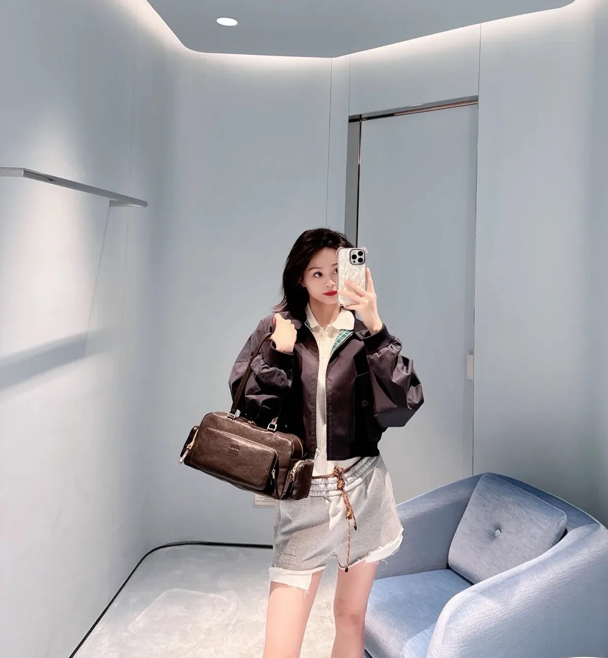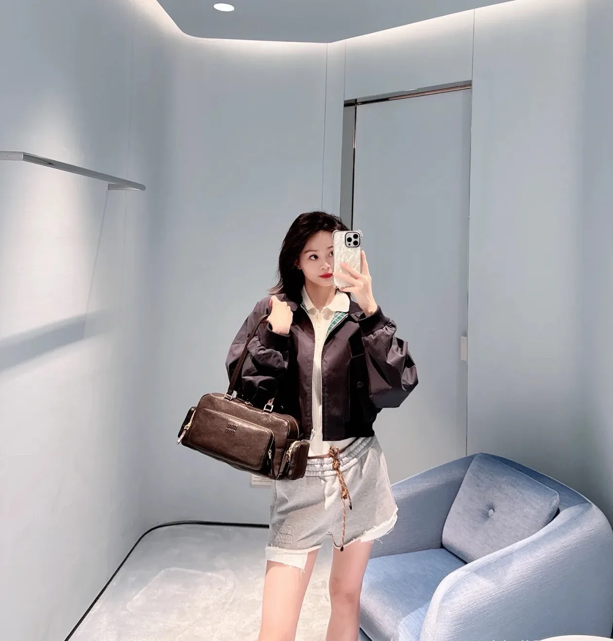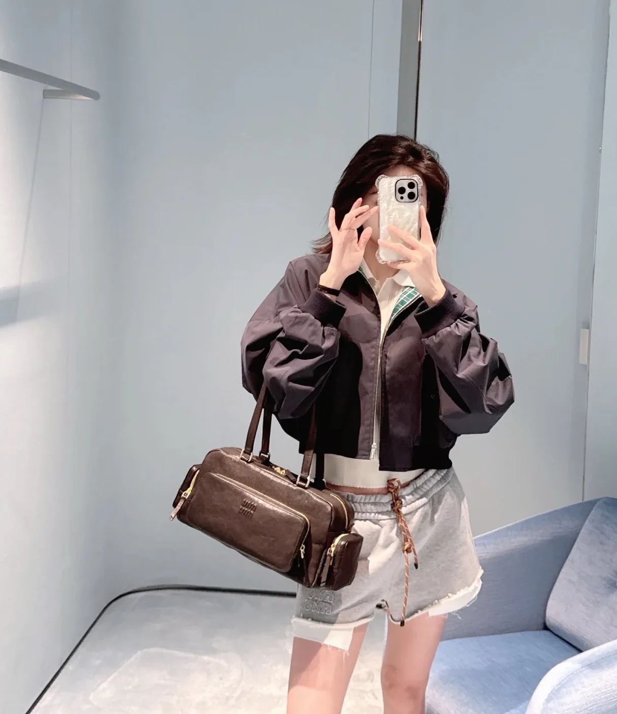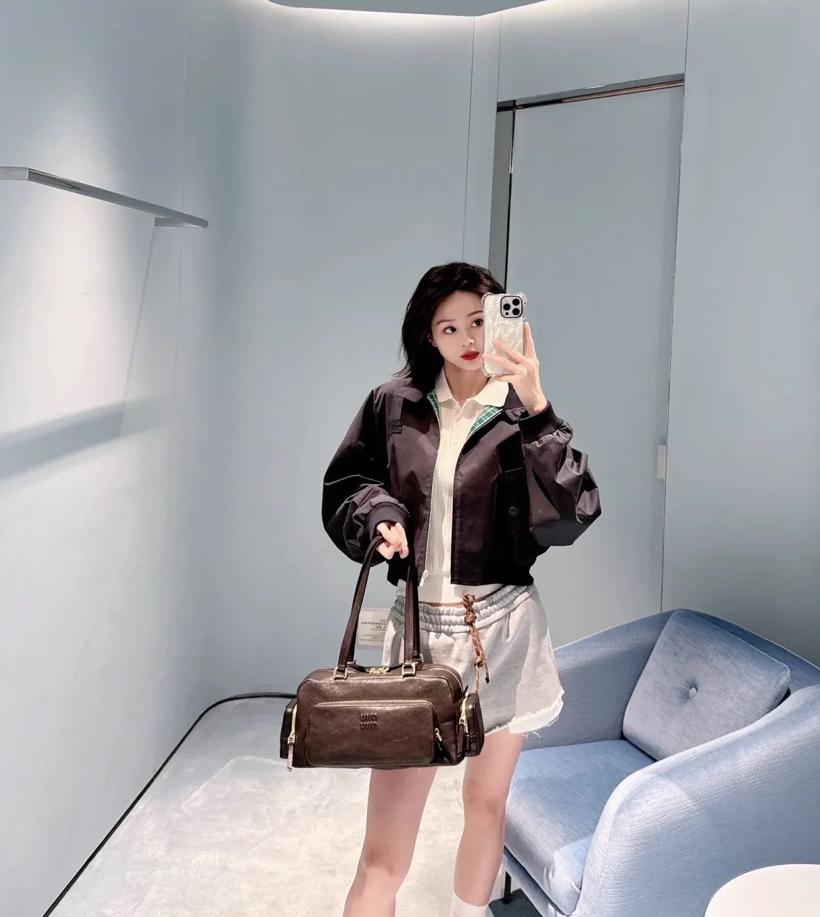 Классическая цветовая палитра из глубокого синего и серого оттенков позволяет легко комбинировать эту куртку как с спортивными штанами, так и с повседневными брюками, создавая тем самым выразительный уличный стиль.