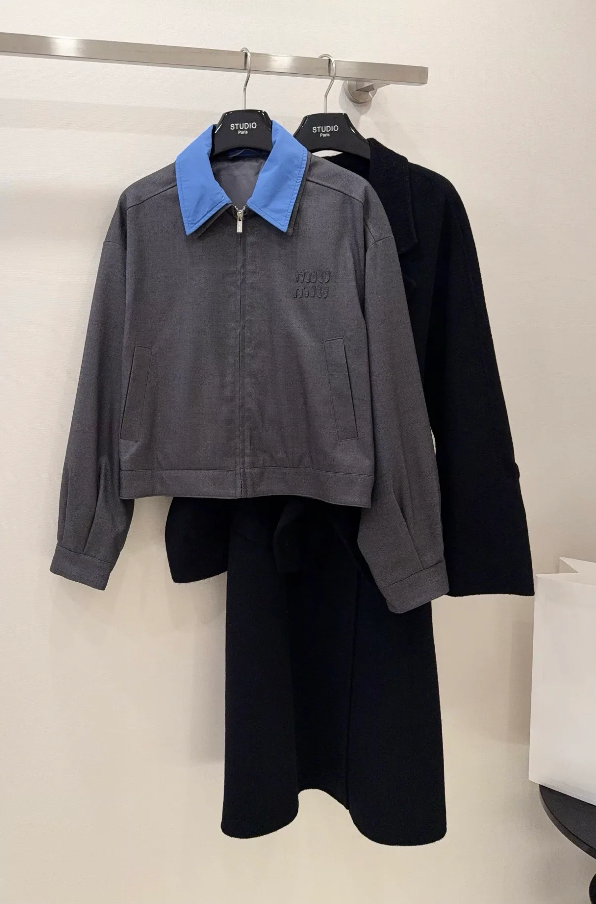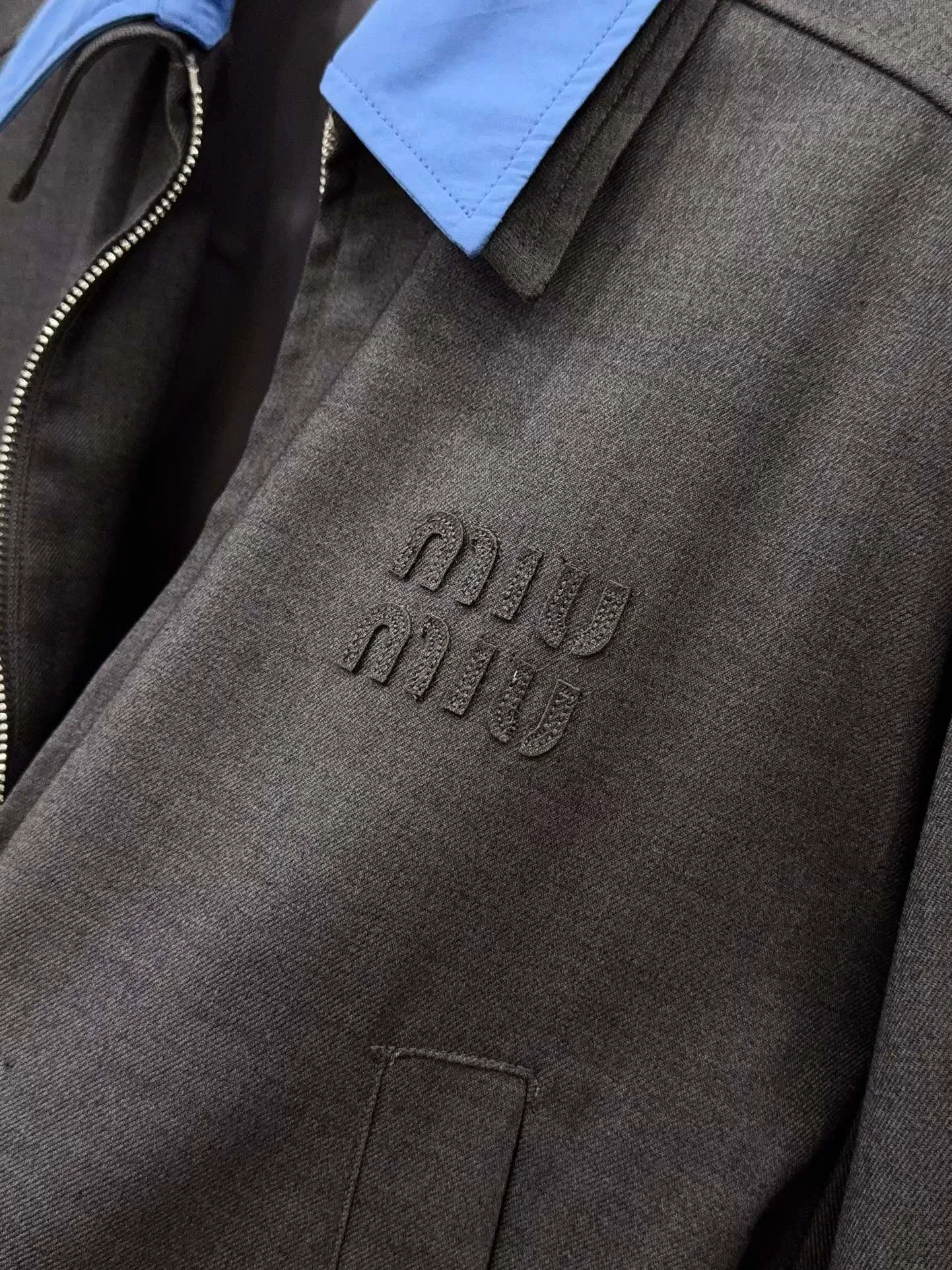 Дизайн с небольшим отложным воротником придаёт изделию характерный стиль MIU MIU, который сочетает в себе молодежный и классический подход. Удобный и свободный силуэт куртки позволяет скрыть недостатки фигуры, что делает её подходящей для женщин любого роста, в том числе для petite-дам.