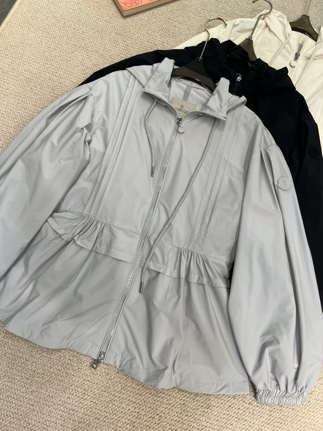 **Материал**: Изготовленные из легкого, водоотталкивающего материала, эти куртки обеспечивают надежную защиту от непогоды, что делает их идеальными для дождливых или ветреных дней. Они легкие и приятные на ощупь, что добавляет комфорта при длительном носке.